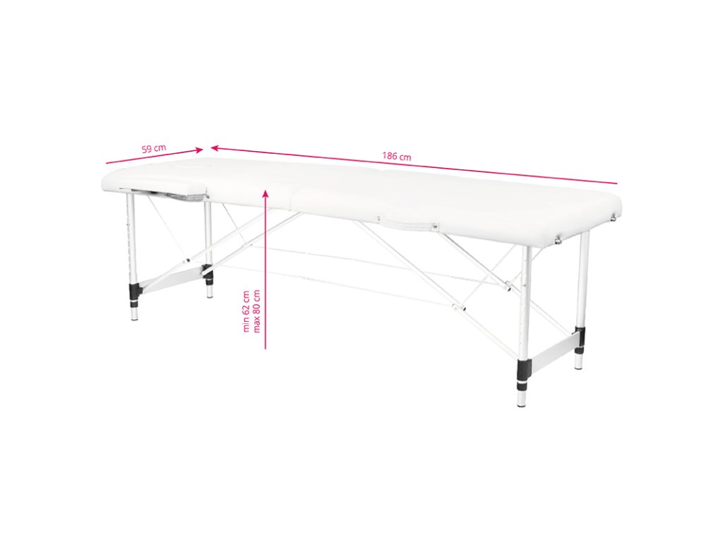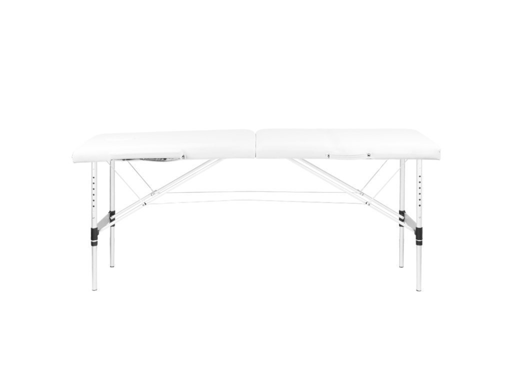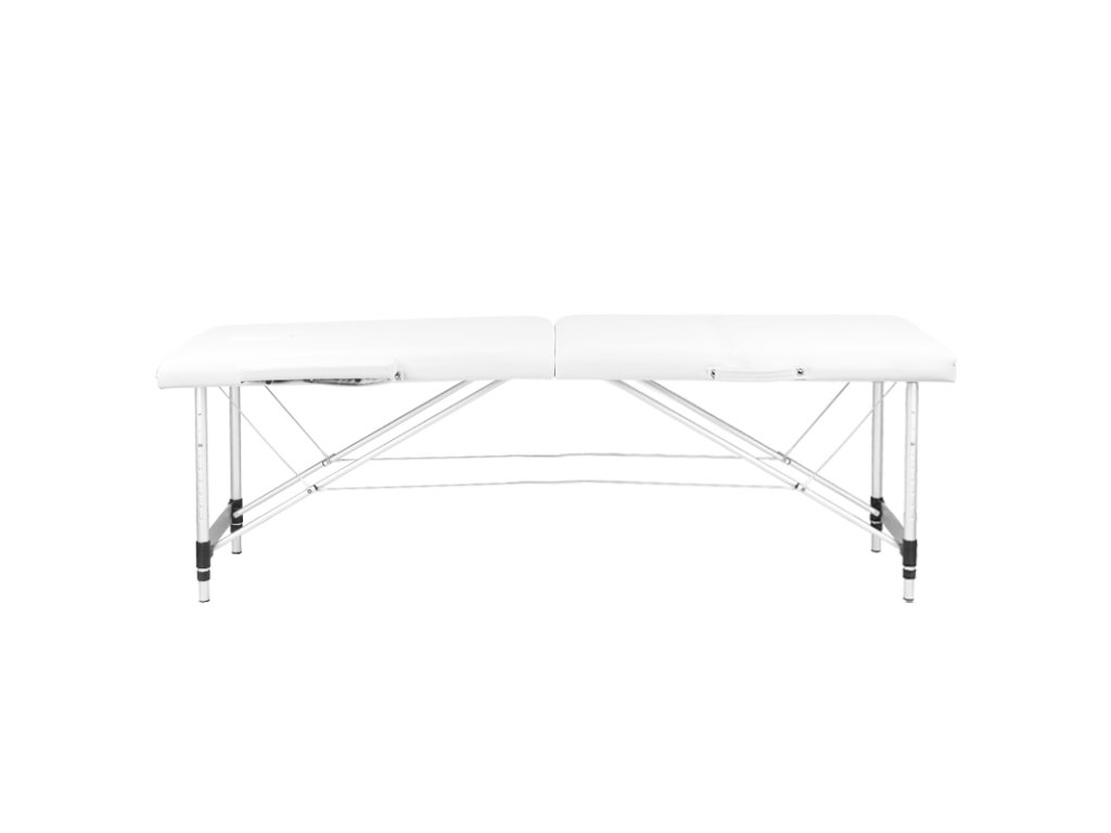 2-dielny hliníkový skladací masážny stôl, komfort, biely