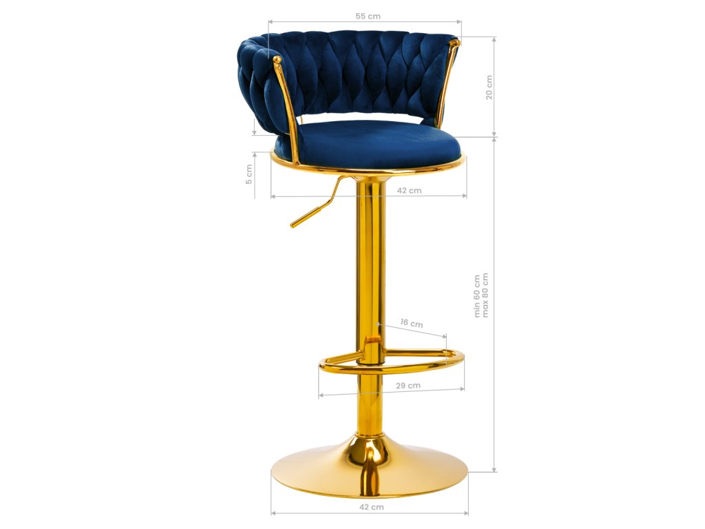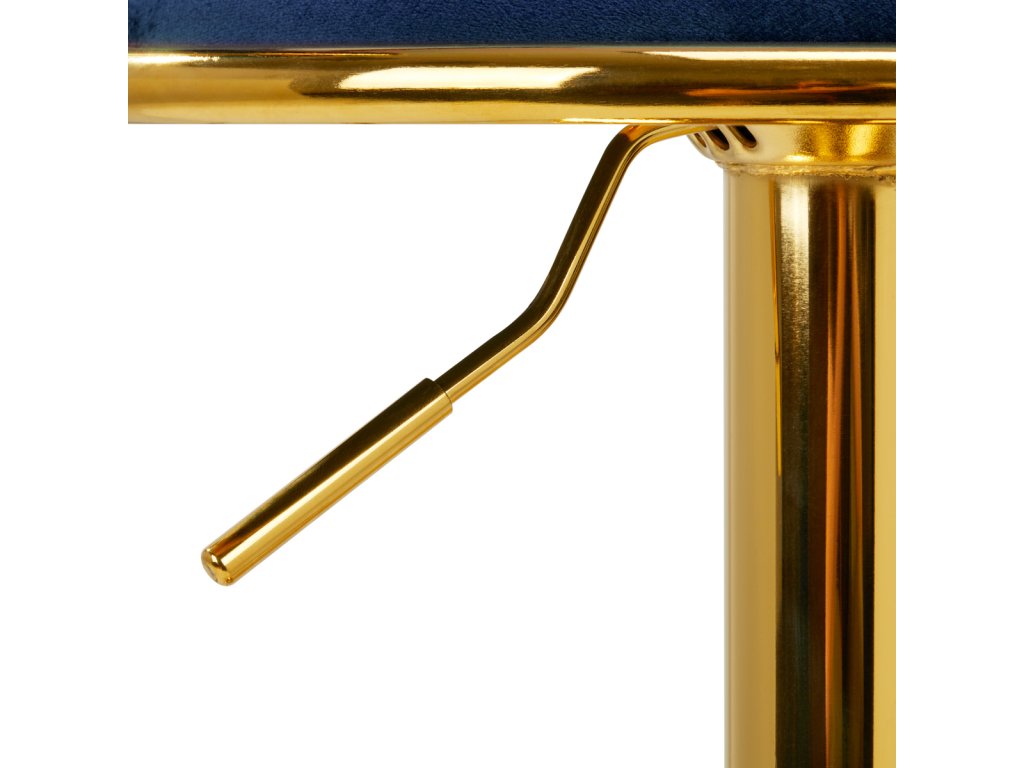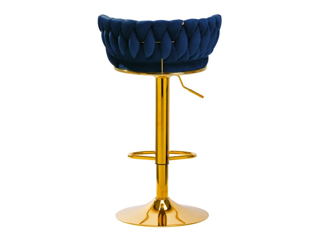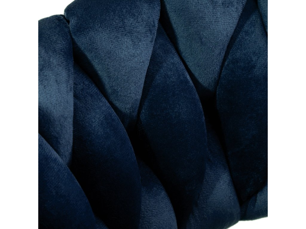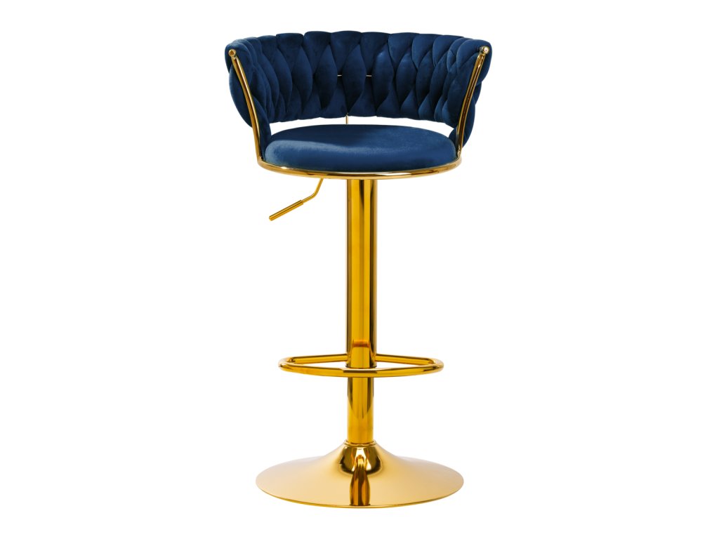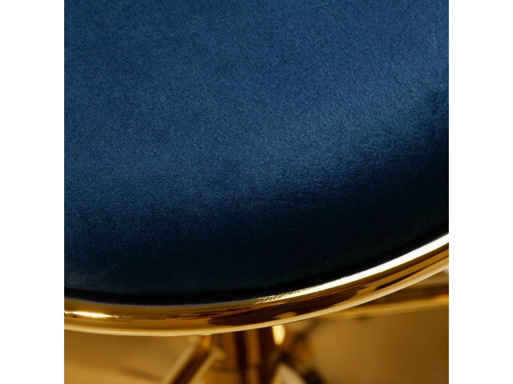 Na dotyk príjemné zamatové čalúnenie v tmavomodrých odtieňoch dodáva hockerovi jedinečný charakter aesteticky prepletená látka na operadle zdôrazňuje jedinečný vzhľad nábytku. Vďaka povrchovej úprave nábytok upúta pozornosť. Rám v odtieňoch zlatej farbydodáva eleganciu a prestíž, dokonale ladiace so zamatom.
