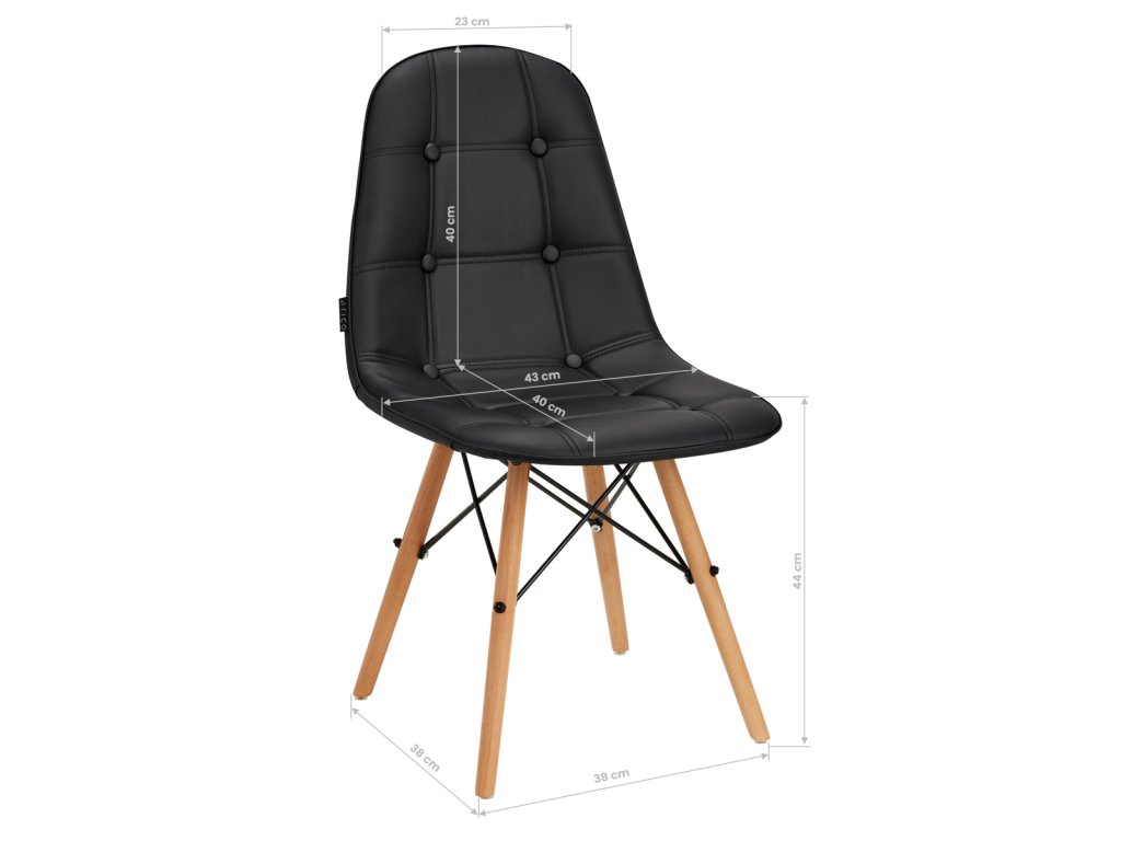 Sedadlo je vyplnené penou a potiahnuté čalúnením z na dotyk príjemnej syntetickej kože v odtieňoch čiernej farby, ktorá sa veľmi ľahko udržiava v čistote. Drobné škvrny a nečistoty možno ľahko odstrániť mierne navlhčenou handričkou. Estetické prešívanie a starostlivé prešívanie poskytujú elegantný nádych, zatiaľ čo kovový rám v odtieňoch čiernej farby dodáva nábytku stabilitu. Nohy s matnou povrchovou úpravou sú zakončené plastovými ochranami, ktoré dodatočne chránia pred náhodným poškodením. Kreslo v škandinávskom štýle je pohodlný kus nábytku, ktorý sa stane ozdobou recepcie každého kozmetického salónu.