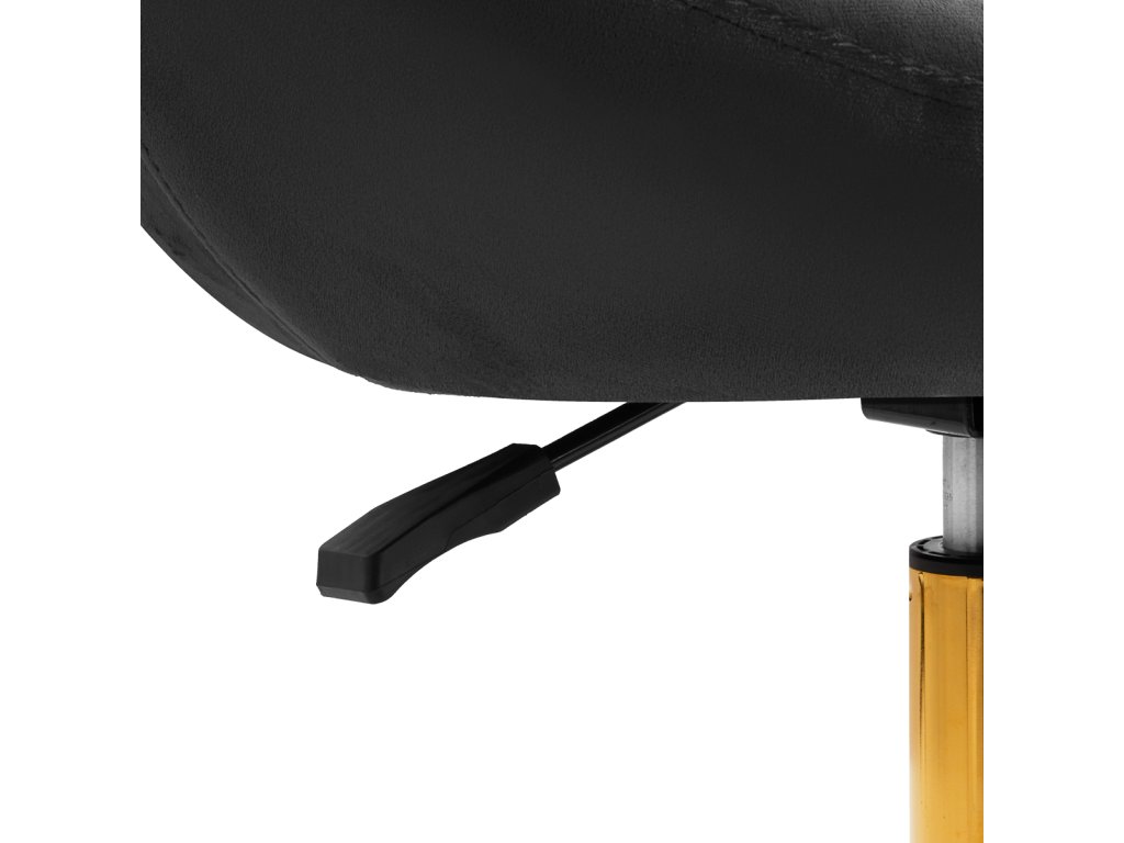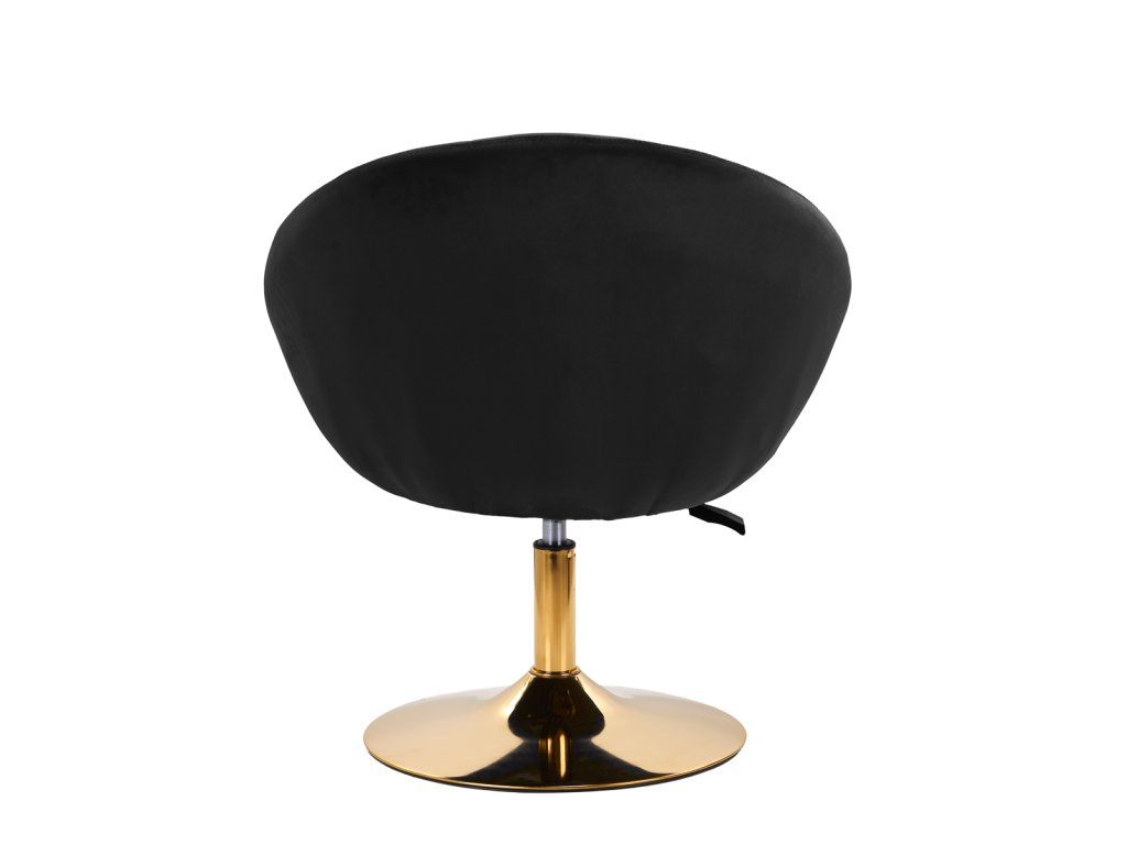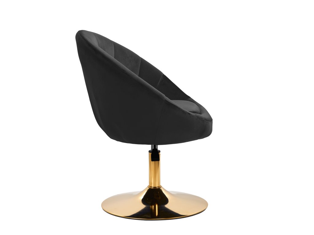 Luxusná povrchová úprava robí nábytok pútavým. Na dotyk príjemné zamatové čalúnenie v odtieňoch čiernej a ozdobné prešívanie mu dodávajújedinečný charakter. Stabilný okrúhly podstavec v odtieňoch zlatejdodáva eleganciu, ktoré dokonale ladia so zamatom. Estetika spracovania, pohodlie pri používaní, ergonomicky profilované operadlo a estetické prešívanie robia kreslo spĺňať požiadavky aj tých najnáročnejších používateľov.