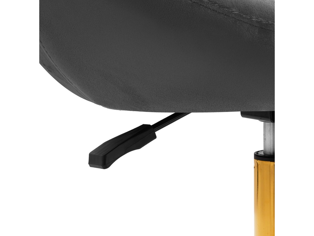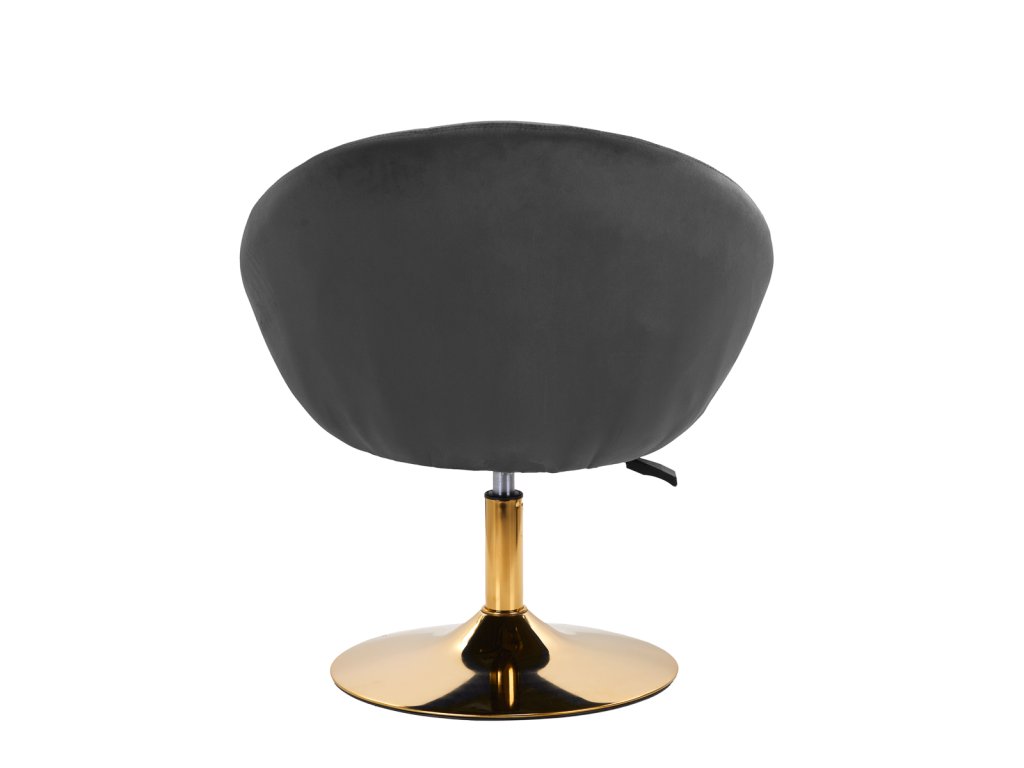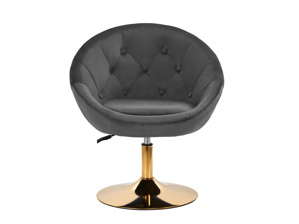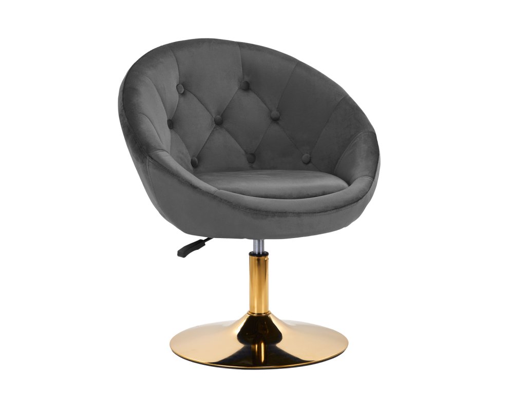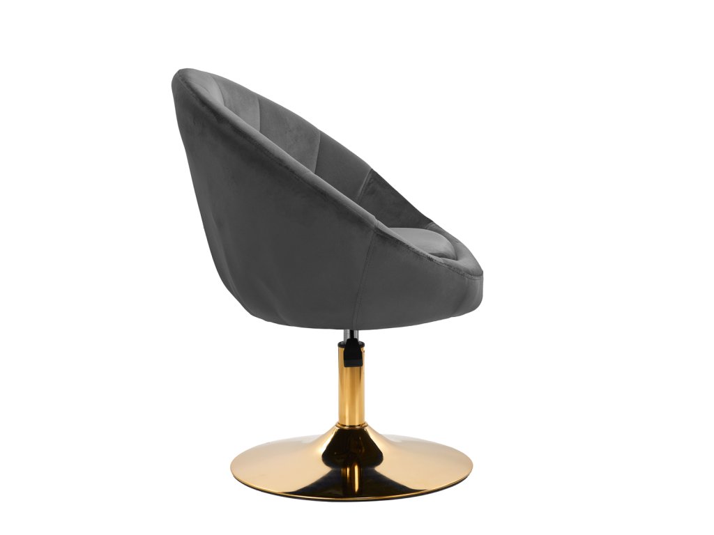 Luxusná povrchová úprava robí nábytok pútavým. Na dotyk príjemné zamatové čalúnenie v odtieňoch sivej a dekoratívne prešívanie mu dodávajújedinečný charakter. Stabilný okrúhly podstavec v odtieňoch zlatejdodáva eleganciu, ktoré dokonale ladia so zamatom. Estetika spracovania, pohodlie pri používaní, ergonomicky profilované operadlo a estetické prešívanie robia kreslo spĺňať požiadavky aj tých najnáročnejších používateľov.