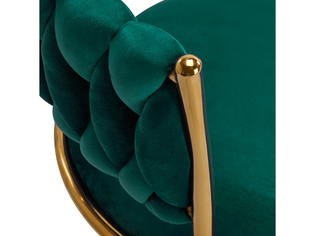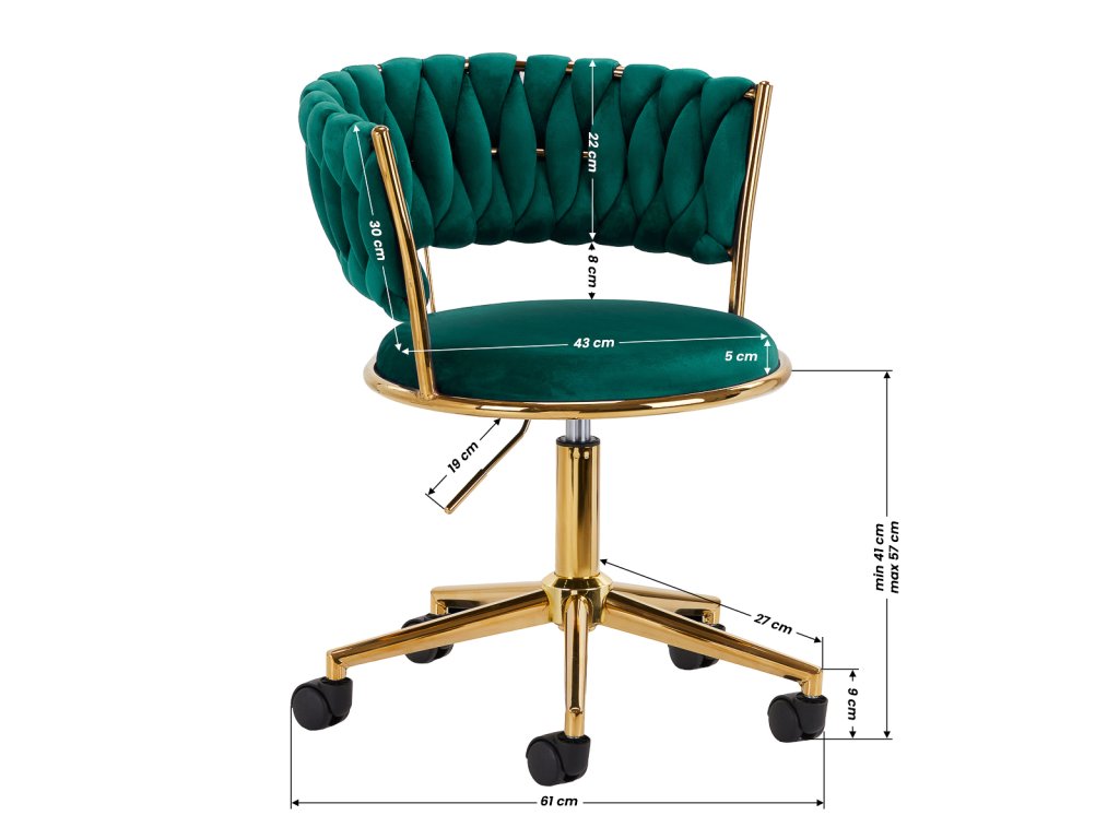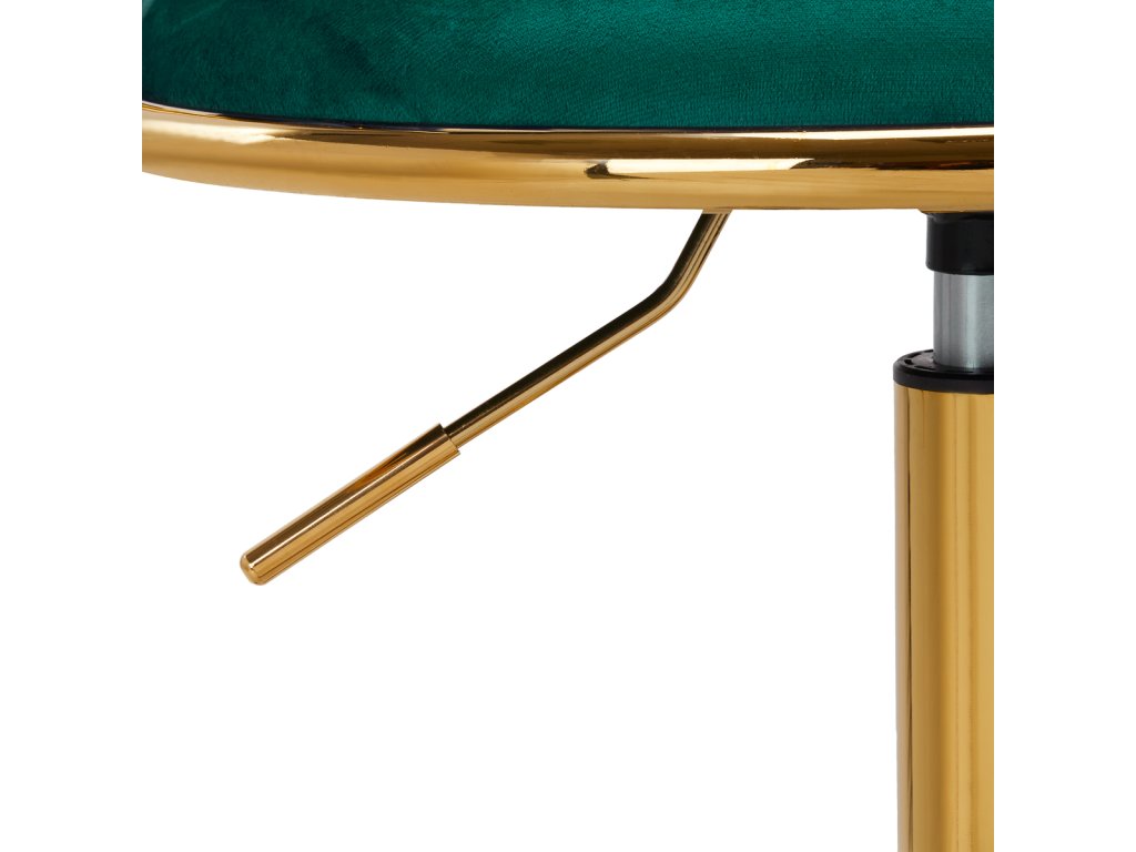 Povrchová úprava robí nábytok pútavým. Na dotyk príjemné zamatové čalúnenie v zelených odtieňoch mu dodáva jedinečný charakter. Podstavec v odtieňoch zlatej dodáva eleganciu a dokonale ladí so zamatom.Funkčné kolieska zabezpečujú mobilitu, čo uľahčuje premiestňovanie kresla a pohyb po salóne počas práce. Vďaka starostlivému spracovaniu, pohodlnému používaniu a esteticky prepleteným materiálom na profilovanom operadle je stoličkasplní požiadavky aj tých najnáročnejších používateľov.