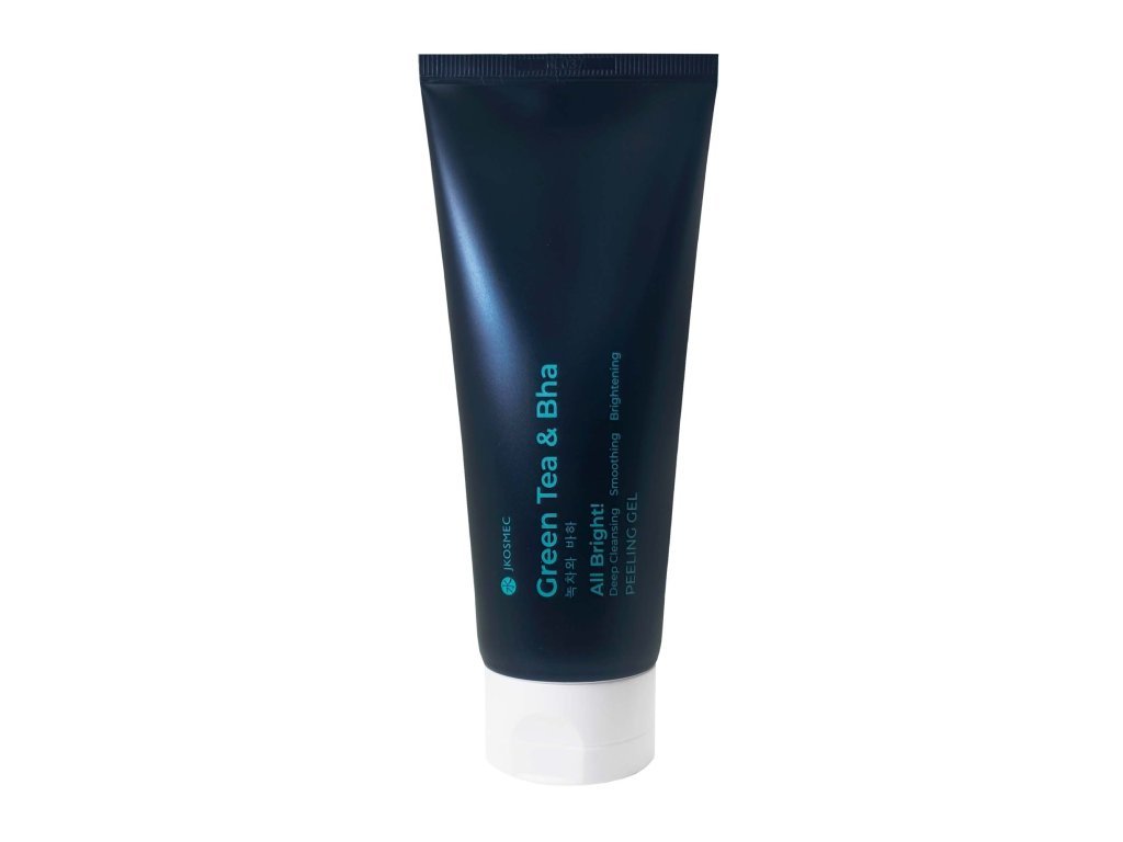 Exfoliačný gél z radu All Bright od JKosmec s obsahom BHA a extraktu zo zeleného čaju, ktorý odstraňuje odumreté kožné bunky bez poškodenia pokožky.