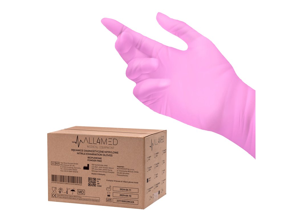All4med jednorazové diagnostické nitrilové rukavice ružové S 10x100 kusov