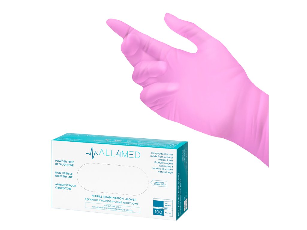 All4med jednorazové diagnostické nitrilové rukavice ružové S