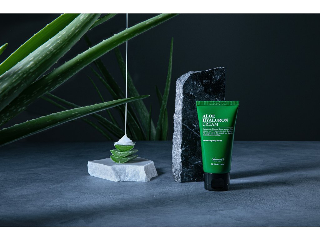 Tento jemný hypoalergénny krém obsahuje 80 % výťažok z aloe vera a hyaluronát sodný, ktoré hydratujú a upokojujú pokožku.