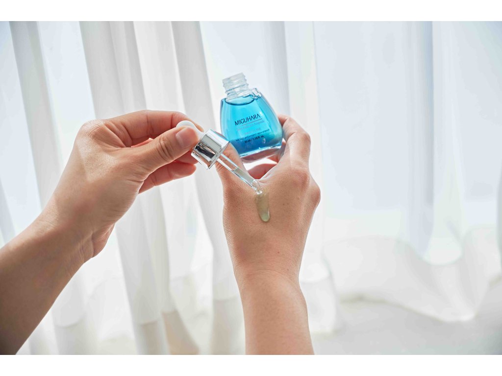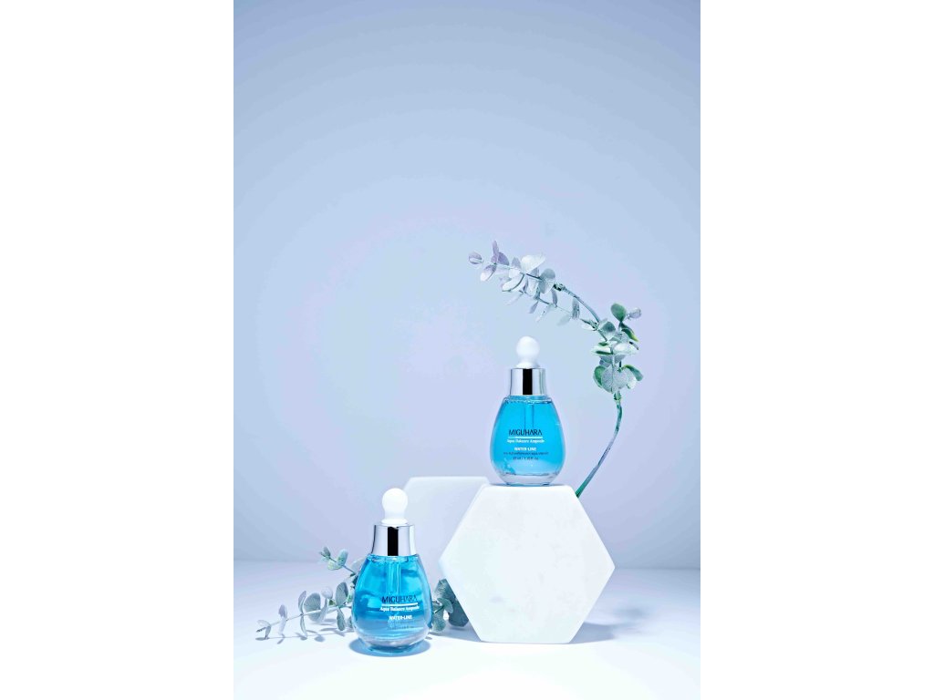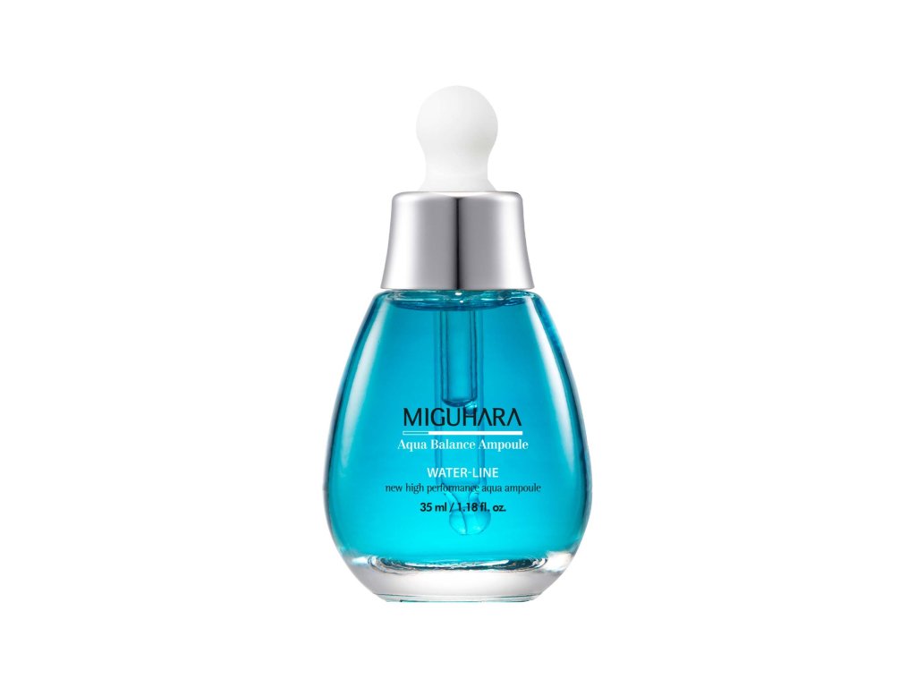 Táto ampulka z radu Aqua Balance značky Miguhara pomáha vyrovnávať pleť, zlepšovať jej hydratáciu a upokojovať ju. Jej zloženie obsahuje glyceryl glukozid, ktorý pomáha predchádzať dehydratácii pokožky, výťažok zo zeleného čaju, ktorý pomáha upokojovať pokožku, a výťažok z Kava Kava, ktorý ju chráni pred možnými podráždeniami spôsobenými vonkajšími faktormi.