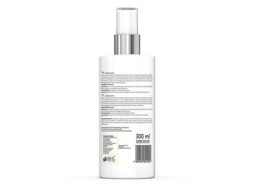 Aktívne tonikum nasýtené zložkami s upokojujúcim účinkom na začervenanie a podráždenie pokožky. Obsahuje komplex ceramidov typu 3 a 6-II s Centella Asiatica a kyselinou hyalurónovou udržiava správnu hydrolipidickú bariéru epidermy s vysokou úrovňou hydratácie, ktorá je kľúčová pre zdravú pokožku. Zjemňuje a vyhladzuje suchú a šupinatú pokožku a zároveň podporuje jej regeneráciu. Obnovuje prirodzenú rovnováhu pokožky, zanecháva ju jemnú na dotyk, pružnú a žiarivú.