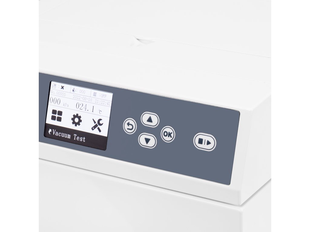 7 automatických programov | 4 sterilizačné programy, 2 testovacie programy; Bowie & Dick, vákuový test a program sušenia. |