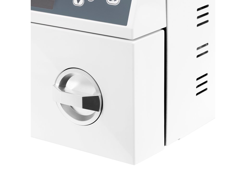 kapacita 3 l | Je to malý, ale veľmi praktický autokláv. Na rozdiel od kazetových autoklávov má 3-litrový autokláv Lafomed nádrž na vodu, možnosť nastavenia času sušenia a komora je vyrobená z nehrdzavejúcej ocele. |