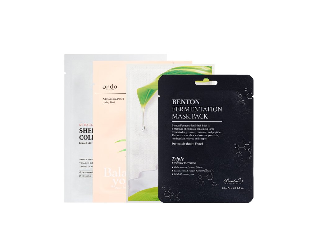 Toto balenie štyroch látkových masiek vytvoril tím MiiN s cieľom vytvoriť dokonalú kombináciu zložiek s účinkami proti starnutiu, ktoré pomáhajú bojovať proti jemným linkám a drobným vráskam a zároveň poskytujú pleti poriadnu dávku hydratácie.Toto balenie obsahuje:1. Fermentačná maska - Benton2. Adenosine Zhi Mu Lifting Mask - Ondo Beauty 36,53. Zázračná kolagénová maska mladosti - Village 11 Factory4. Joyful Time Essence Snail - Mizon???*Použitie*Použitie tohto balenia masiek pomáha redukovať vrásky a jemné linky.??? ???*Zloženie*Fermentačná maska - BentonGalactomyces Ferment Filtrate, Aqua (Water), Lacto bacillus/Collagen Ferment Filtrate, Glycerin, Propanediol, Pentylene Glycol, Butylene Glycol, Bifida Ferment Lysate, 1, 2- Hexanediol, Sodium Hyaluronate, CeramideNP, Aloe Barbadensis Leaf Extract, Althaea Rosea Root Extract, Acetyl Hexapeptide-8, Copper Tripeptide-1, Betaine, Panthenol, Usnea Barbata (Lichen) Extract, Zanthoxylum Piperitum Fruit Extract, Pulsatilla Koreana Extract, Hydroxyethylcellulose, Adenosine, Carbomer, Hydrogenated Lecithin, ArginineAdenosine Zhi Mu Lifting Mask - Ondo Beauty 36.5Aqua (voda/voda), glycerín, butylénglykol, kaprylový/kapricový triglycerid, niacínamid, extrakt z koreňa Anemarrhena Asphodeloides (Zhi Mu), adenozín, hyaluronát sodný, tokoferol, tokoferyl acetát, alantoín, acetyl dipeptid-1 cetyl ester, Hydrolyzovaný sezamový proteín PG-Propyl Methylsilanediol, Glycine Soja (sójový) olej, Prunus Amygdalus Dulcis (sladká mandľa) extrakt zo semien, Daucus Carota Sativa (mrkva) extrakt z koreňa*, Beta-karotén*, Helianthus Annuus (slnečnicový) olej zo semien, Pelargonium Graveolens kvetový olej, Citrus Aurantium Bergamia (Bergamot) Fruit Oil, Rosa Damascena (Rose) Flower Oil, Cananga Odorata (Ylang-Ylang) Flower Oil, Betaine, Caprylyl Glycol, Cetearyl Olivate, Hydroxyethylcellulose, Polyglyceryl-6 Behenate, Polyglyceryl-6 Stearate, Sodium Phytate, Sorbitan Laurate, Sorbitan Olivate, Xanthan Gum, 1, 2-Hexanediol, Acrylates Copolymer, Ethylhexylglycerin, Hydrogenated Polyisobutene, Hydroxyacetophenone, Tromethamine, Acrylates/C10-30 Alkyl Acrylate Crosspolymer, VP/Polycarbamyl Polyglycol EsterMiracle Youth Collagen Mask - Village 11 FactoryWater, Dipropylénglykol, glycerín, hydroxyacetofenón, kaprylylglykol, xantánová guma, karbomér, trometamín, polyglyceryl-6-kaprilát, polyglyceryl-4-kaprát, adenozín, butylénglykol, fytát sodný, alantoín, 1, 2-hexanediol, extrakt z kvetov Lavandula Angustifolia, Extrakt zo semien Adansonia Digitata, extrakt z listov Hamamelis Virginiana, dipotassium Glycyrrhizate, extrakt z listov Melaleuca Alternifolia, extrakt z plodov Myrciaria Dubia, extrakt z koreňa Glycyrrhiza Uralensis, extrakt z Cetraria Islandica, extrakt z Fucus Vesiculosus, Himanthalia Elongata Extract, Gelidium Cartilagineum Extract, Laminaria Japonica Extract, Collagen Extract, Glycine Soja Oil, RetinolJoyful Time Essence Snail - Mizon*Aqua (Water/Eau), Methylpropanediol, Glycerin, Betaine, Snail Secretion Filtrate, Centella Asiatica Extract, Alantoin, Sodium Hyaluronate, Hydrolyzed Collagen, Butylene Glycol, 1, 2-Hexanediol, Xanthan Gum, Sodium Citrate, Citric Acid, Ethylhexylglycerin, Hydroxyacetophenone, PEG-60 Hydrogenated Castor Oil, Disodium EDTA, Parfum (Fragrance), Linalool. *Zoznamy zložiek sa pravidelne aktualizujú a môžu sa líšiť. Pri prevzatí výrobku skontrolujte zoznam zložiek na obale alebo sa poraďte s naším predajným tímom? ???*Ako používať*Fermentačná maska - BentonPo očistení pleti masku jemne priložte na tvár a naneste na 10-20 minút. Odstráňte masku a jemne vklepte zvyšky esencie, aby sa vstrebali. adenozínová liftingová maska Zhi Mu - Ondo Beauty 36,5Naneste masku na vyčistenú tvár. Po 10-15 minútach odstráňte a zvyšné sérum vmasírujte do pokožky, kým sa úplne nevstrebe. Neoplachujte. Časté používanie môže zlepšiť výsledky.kolagénová maska Miracle Youth - Village 11 FactoryVyberte masku z vrecúška a priložte ju na tvár, pričom začnite od oblasti očí a postupujte smerom von. Uistite sa, že je fólia hladká bez záhybov. Nechajte ju pôsobiť 10-15 minút a potom masku opatrne odstráňte. Zvyšnú esenciu vmasírujte do pleti, kým sa úplne nevstrebe.Joyful Time Essence Snail - MizonPo vyčistení pleti a použití tonika si na tvár priložte pleťovú masku. Po 10 - 20 minútach ju odstráňte a zvyšnú esenciu zľahka vklepte do pleti, kým sa úplne nevstrebe.?