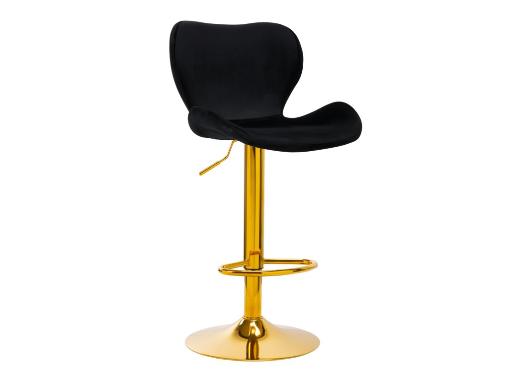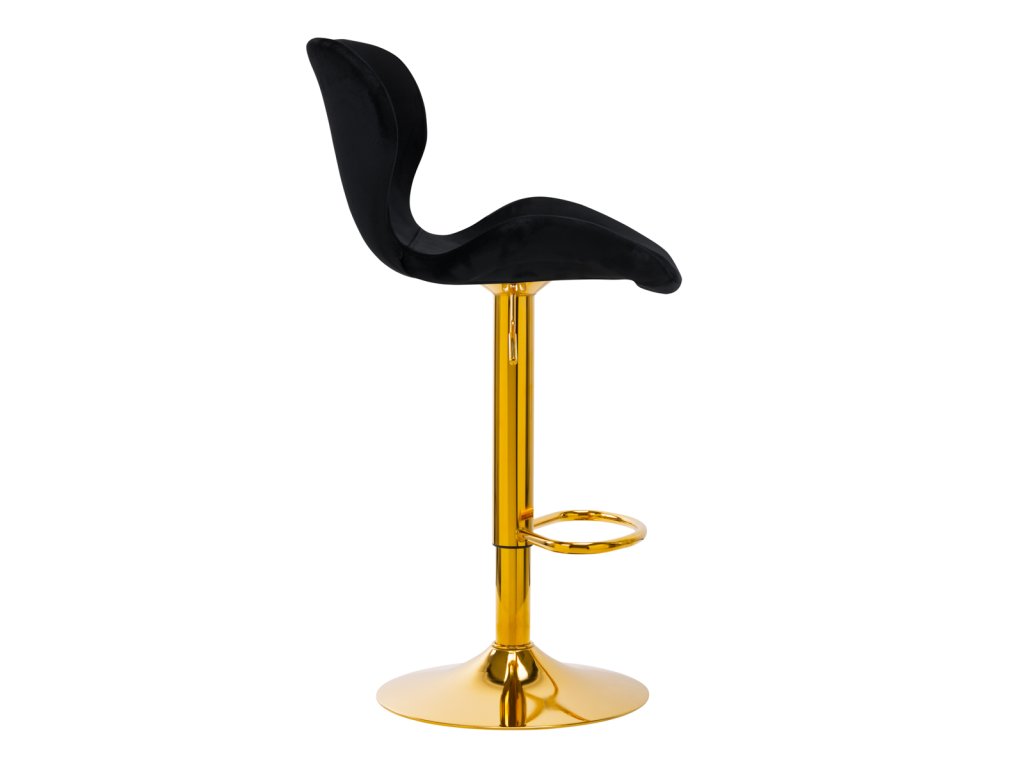 Hocker sa vyznačuje tým, žena dotyk príjemné zamatové čalúnenie v odtieňoch čiernej farby, ktorá mu dodáva exkluzívny charakter. Stránkaokrúhla základňa s protišmykovou gumou zabezpečuje stabilitu, zatiaľ čominimalistický dizajn umožňuje dokonale zapadnúť do každého interiéru. Zlatý podstavec dodáva eleganciu a harmonicky ladí so zamatovým materiálom. Vďakaergonomický tvar sedadla a operadla a nastaviteľnou výškou je táto stolička ideálnou voľbou pre tých, ktorí oceňujú štýl a pohodlie.