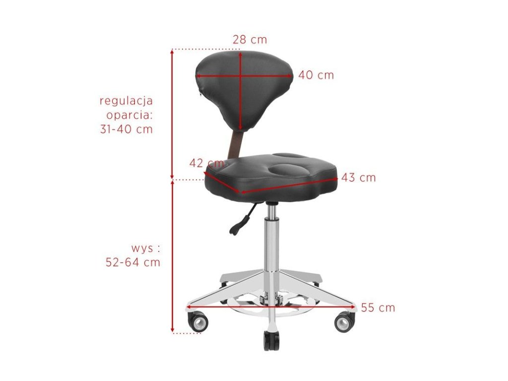 pohodlná, exkluzívna, stabilná kozmetická stolička s operadlom a profilovaným sedadlom na päťhviezdičkovej, veľmi stabilnej základni. je vybavená senzačným systémom "bump-up", ktorý umožňuje nastaviť výšku pomocou nohy bez použitia ruky.