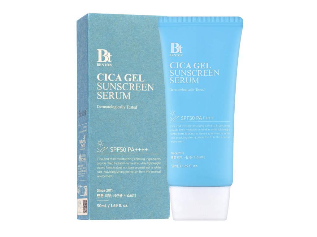 Ľahký, hydratačný a upokojujúci opaľovací krém SPF50 PA++++ s CICA na ochranu pokožky pred poškodením spôsobeným slnkom.