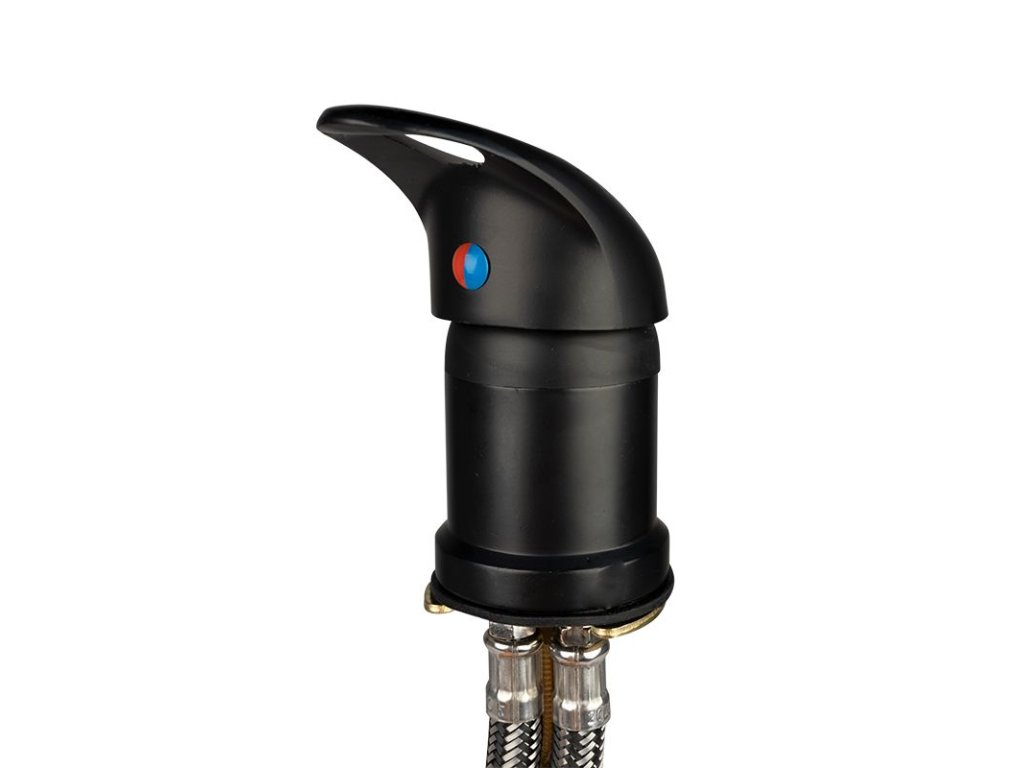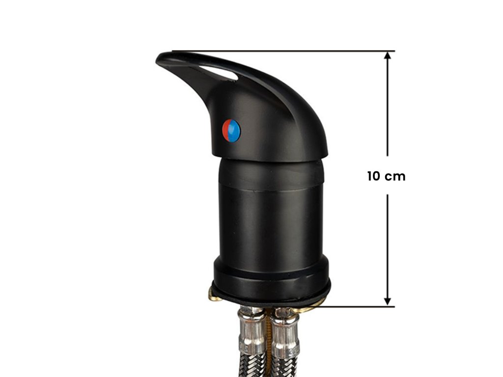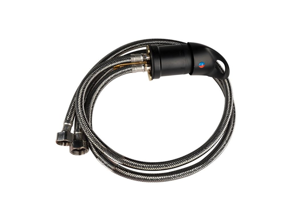 Mixážna batéria vhodná pre väčšinu kaderníckych umývacích zariadení dostupných v Poľsku. Mosadzná batéria, čierna povrchová úprava s vysokou odolnosťou. Pripojovacie hadice zabezpečené oceľovým opletením, ktoré zaručuje odolnosť.