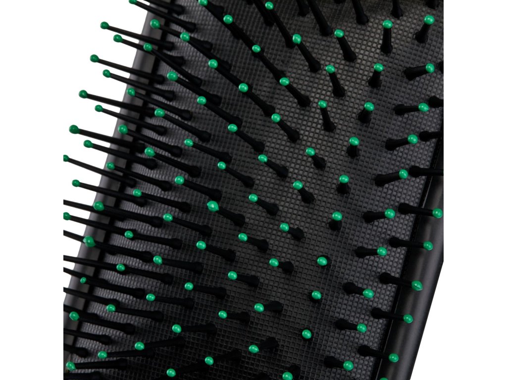 Plochá a pneumatická kefka so syntetickými štetinami so zaoblenými koncami je ideálna na každodenné použitie. Kefa rýchlo a bez trhania rozčesáva suché aj mokré vlasy.