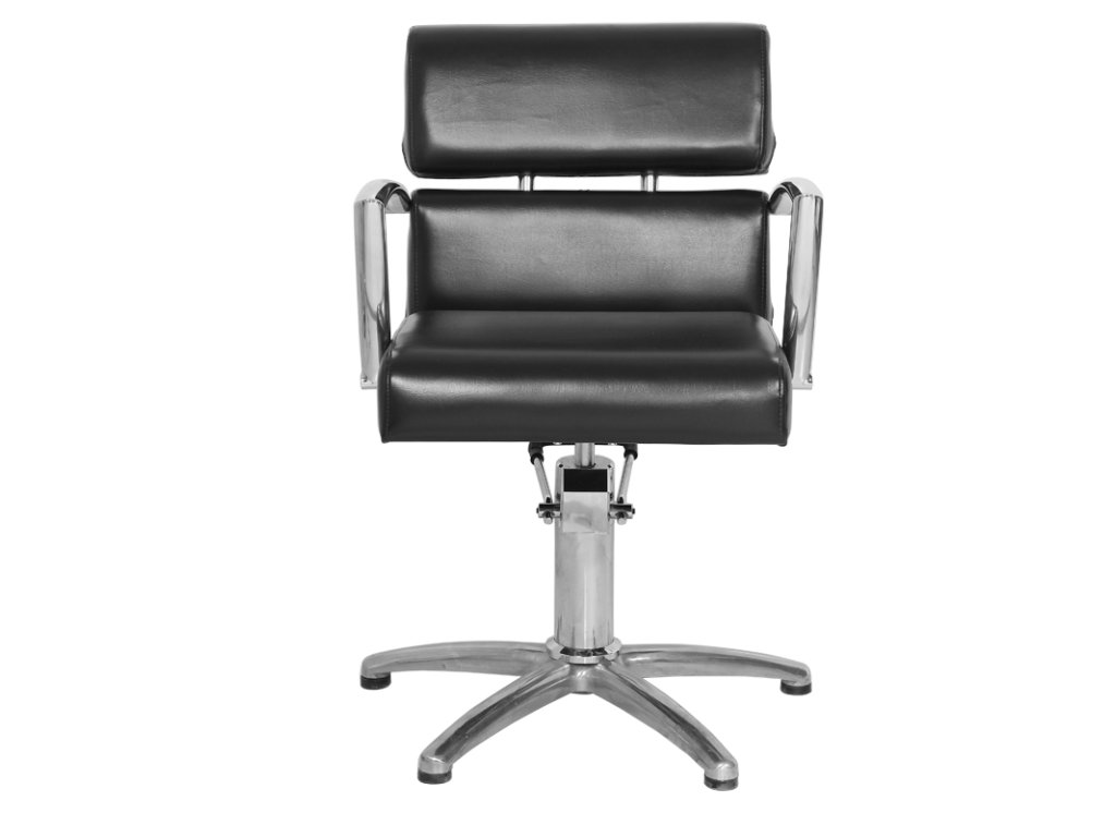 moderné biele holičské kreslo. namontované na stabilnej päťhviezdičkovej základni. sedadlo čalúnené kvalitnou ekokožou. nastaviteľné sedadlo hore-dole. dobre profilované sedadlo zabezpečuje pohodlnú polohu klienta počas kaderníckych procedúr.