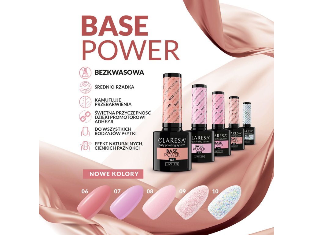Power base zanecháva vizuálne tenké a prirodzene vyzerajúce nechty s dokonale rovným povrchom. Škála prirodzených nude a ružových odtieňov poskytuje maskovací efekt, takže si môžete vychutnať jemný vzhľad bez obáv z priesvitného zafarbenia. Ak je vaša platnička od prírody jemná a citlivá - nebojte sa! Naša báza neobsahuje kyseliny (neobsahuje metakryl a kyselinu akrylovú), takže je vhodná na všetky typy nechtov - mimochodom, nielen na tie na rukách, pretože sa skvele hodí aj na pedikúru.