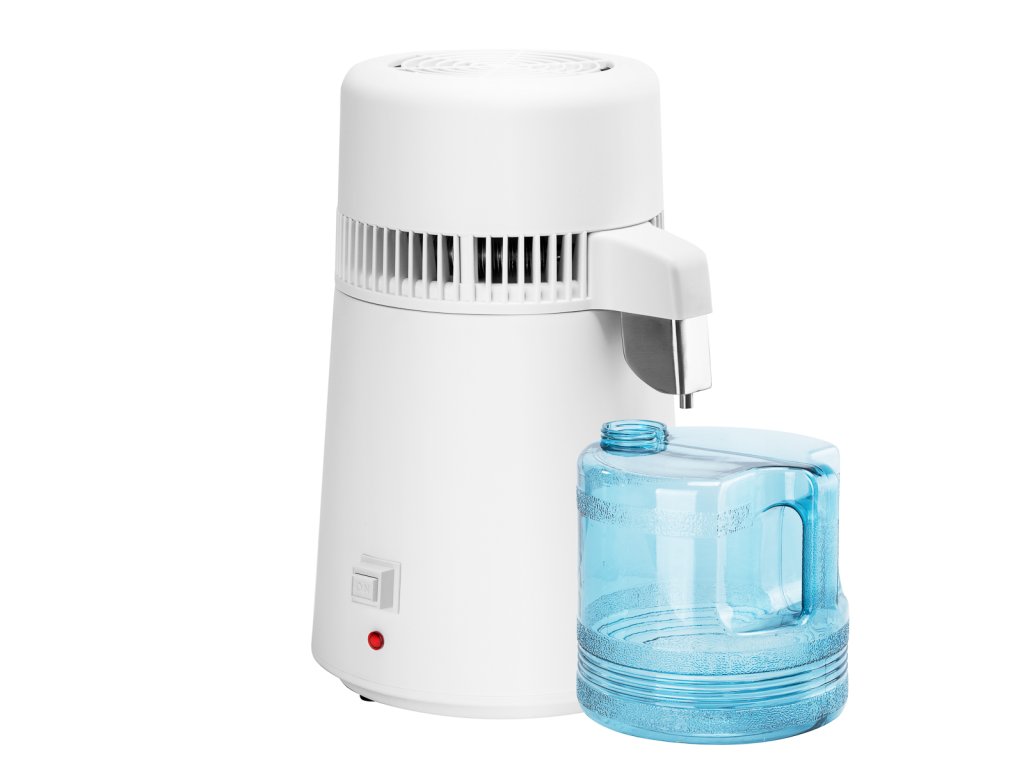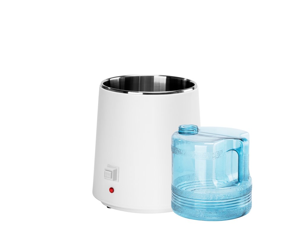 Zahrnuté: základňa destilátora, nádrž na vodu, uzáver, filter, napájacie káble, návod na použitie.