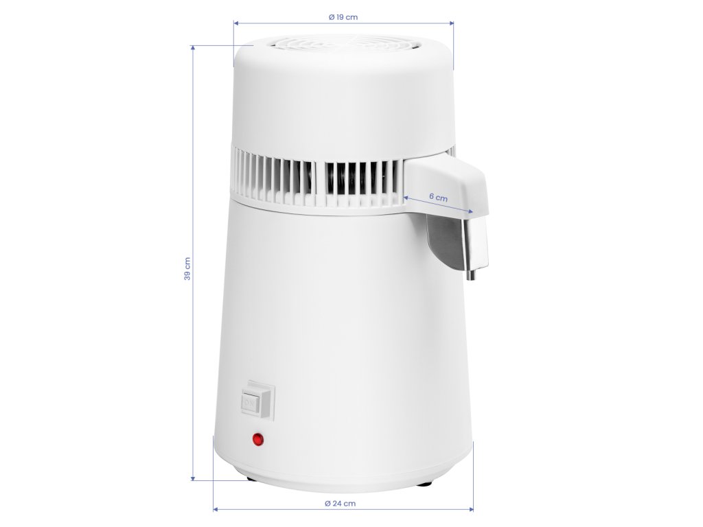 Zariadenie bolo navrhnutés ohľadom na jednoduchú obsluhu. Stačí naplniť nádobu vodou, zatvoriť veko, zapnúť zariadenie a proces destilácie sa automaticky spustí. Účinnosť zariadenia je1 liter za hodinu, čím sa zabezpečí rýchle a účinné čistenie vody. Okrem toho funkcia automatického vypnutia po skončení a ochrana proti prehriatiu, ktorá sa aktivuje pri teplote 160 ºC,záruka bezpečného používania.