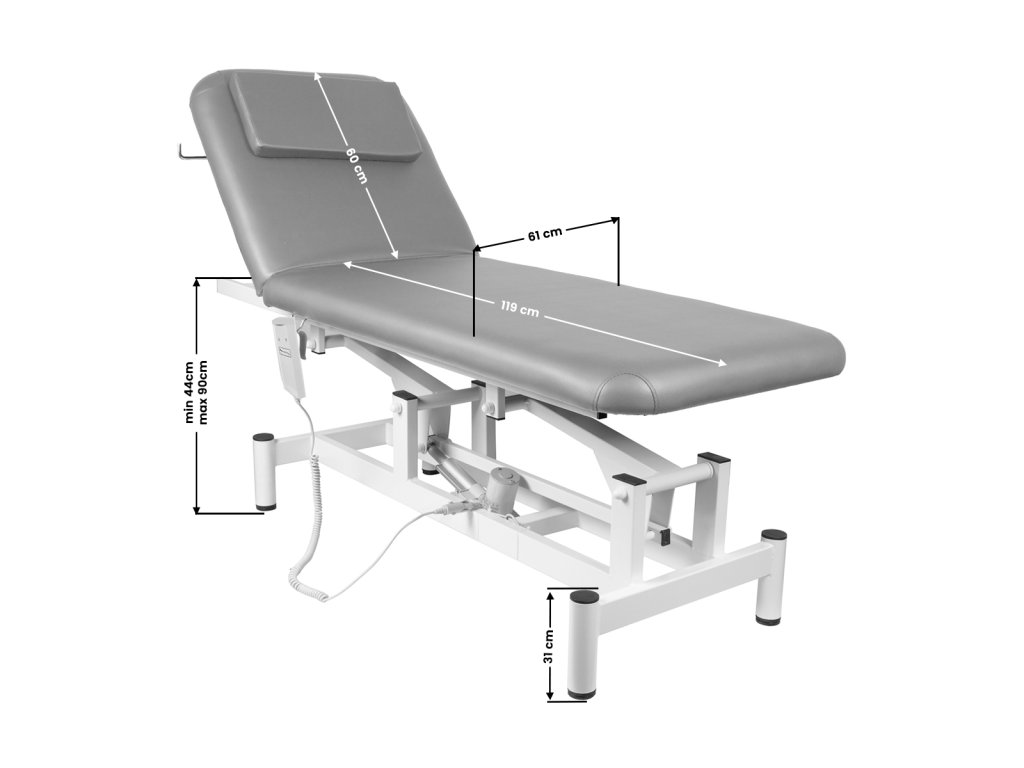 lehátko je určené najmä na fyzioterapeutické procedúry a do kozmetických salónov. je vybavené 1 motorom, vďaka ktorému sa elektricky reguluje výška, sklon operadla sa nastavuje manuálne. opierka hlavy je vankúš, ktorý zakrýva otvor na tvár. má výnimočne stabilnú konštrukciu a pohodlnú pracovnú dosku.