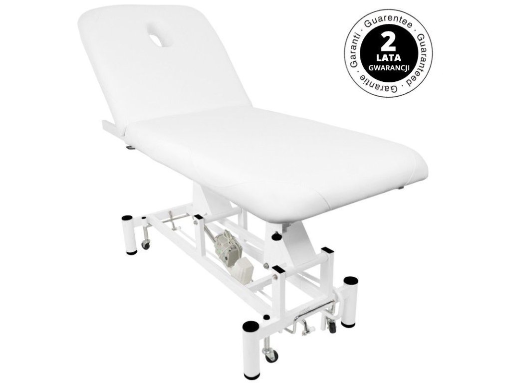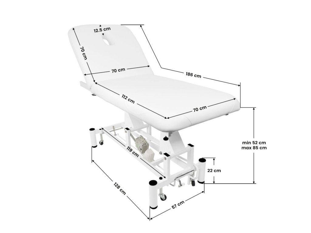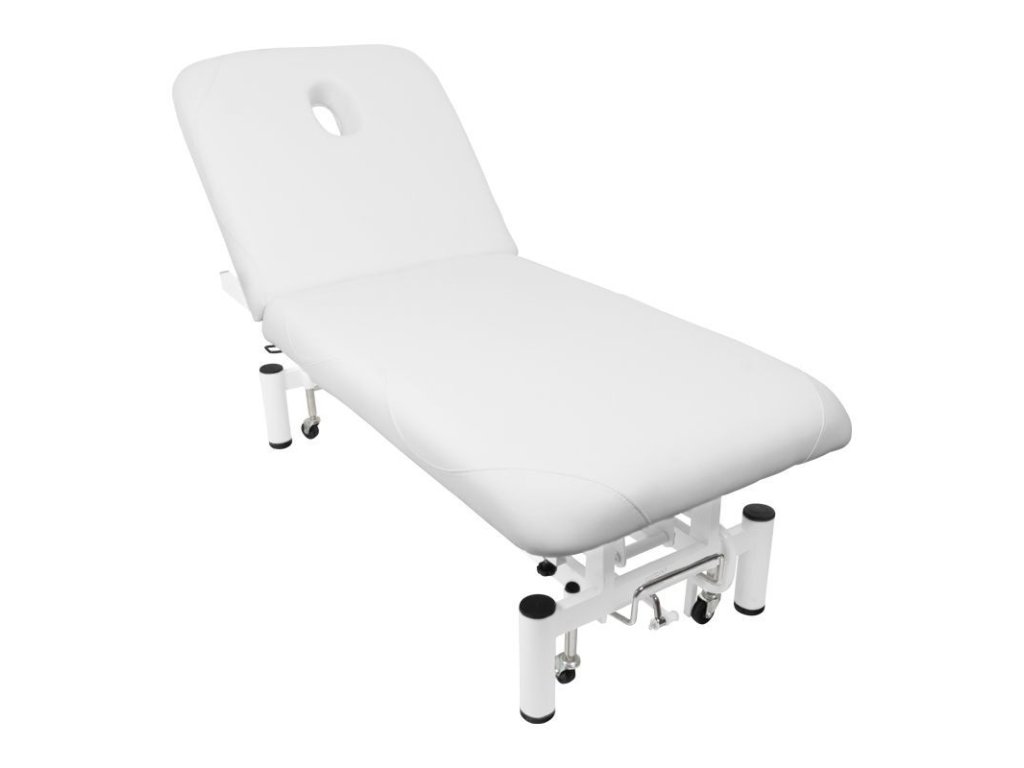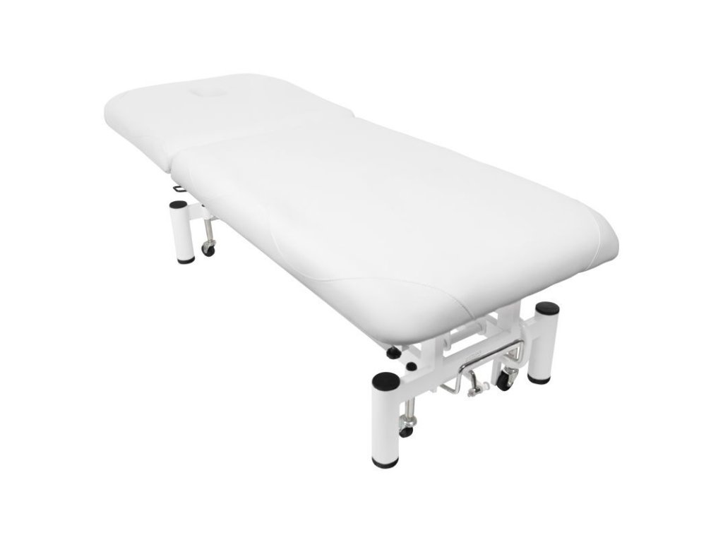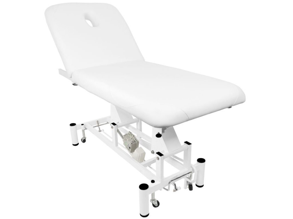 vysoko výkonné lehátko, najmä na fyzioterapeutické procedúry. vybavené 1 motorom, výška je elektricky nastaviteľná, operadlo a sklon sú nastaviteľné manuálne. opierka hlavy je vankúš s ventilačným otvorom.