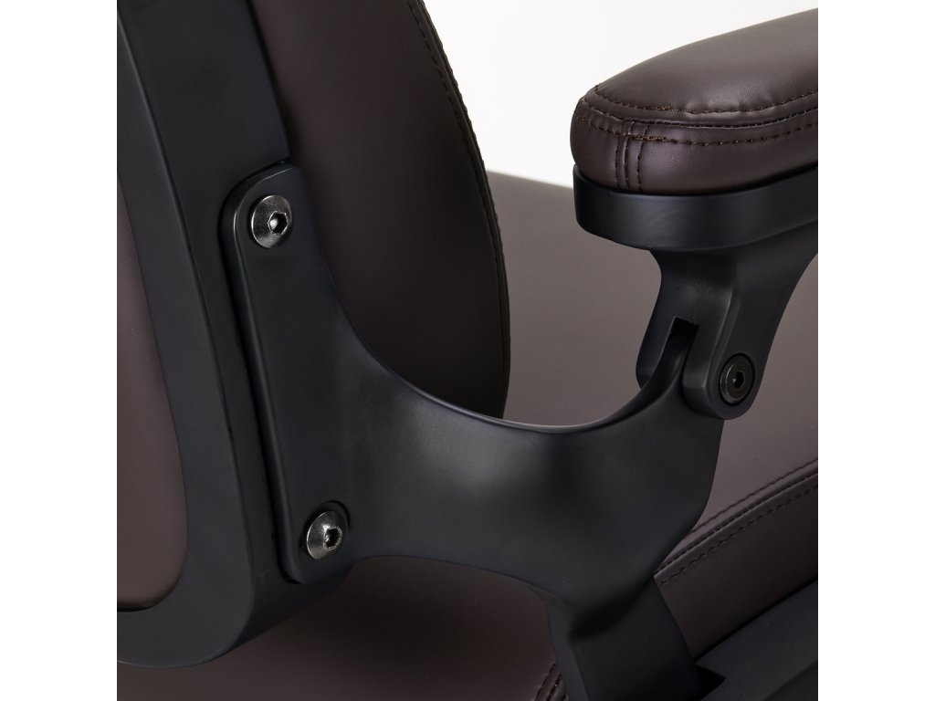 Pevná konštrukcia základne zaručujestabilita a trvanlivosť nábytku. Na dotyk príjemné čalúnenie zo syntetickej kože v odtieňoch hnedej farby jeestetický, odolný voči vlhkosti a ľahko sa čistí. Všetky tieto prvky spolu vytvárajú kus nábytku, ktorý nielenže dokonale plní svoju funkciu, ale zároveň dodávaelegancia a profesionalita do salónu.