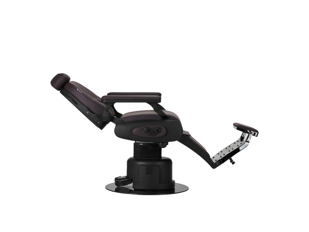 Elektrický riadiaci systém zaručuješiroké možnosti nastavenia. Umožňuje presné nastavenie výšky sedadla v rozsahu 58-72 cm a takmer úplnú rotáciu, ktorá poskytuje holičomznačná voľnosť pohybu, a to aj v menších priestoroch. Ovláda satlačidlami umiestnenými na boku stoličky a nožným ovládaním, čo poskytuje dodatočnú flexibilitu počas práce. Opierka chrbta a opierka nôh sa zdvíhajú aj elektricky, čo umožňujerýchle a plynulé nastavenie polohy klienta k vykonávanej liečbe.