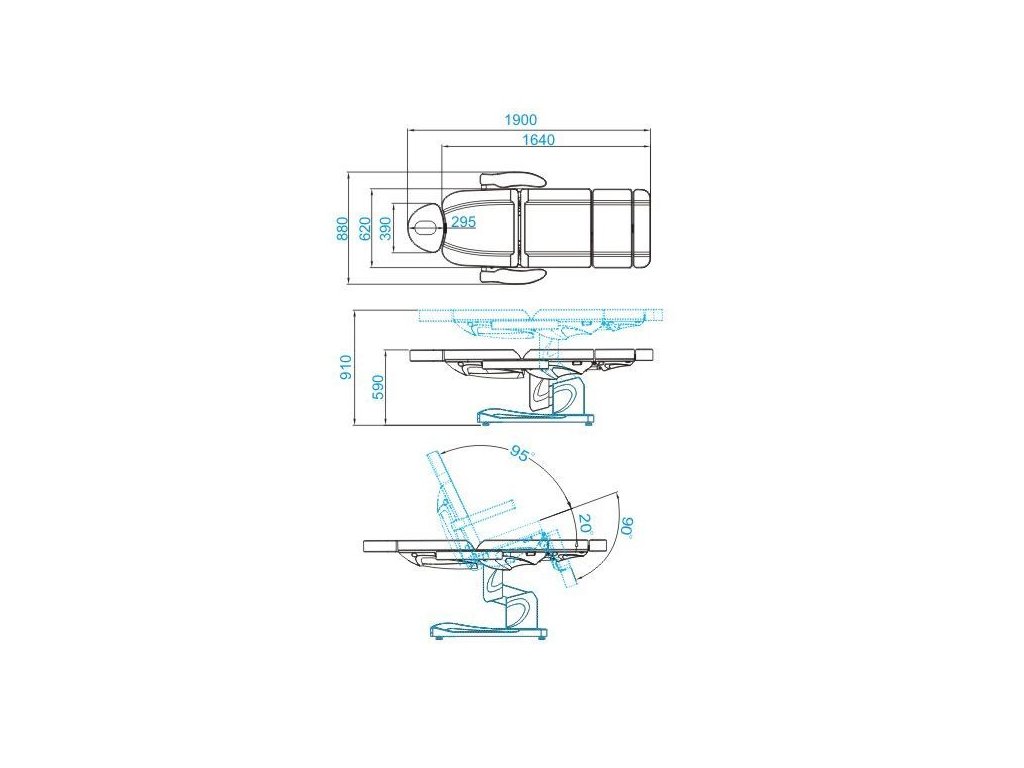 elektrické kozmetické kreslo, ideálne pre kozmetické salóny a kúpele. vďaka nezávislým motorom umožňuje nastavenie kresla v 4 rovinách pomocou diaľkového ovládania, čo umožňuje vykonávať ošetrenia tváre a tela. pomocou diaľkového ovládania môžeme nastaviť výšku kresla, sklon operadla a opierky nôh a nastaviť sedadlo do polohy kolísky.