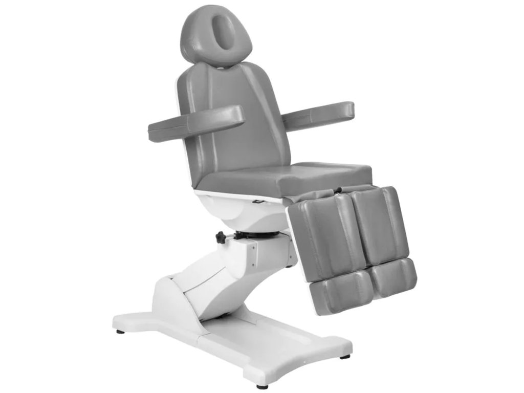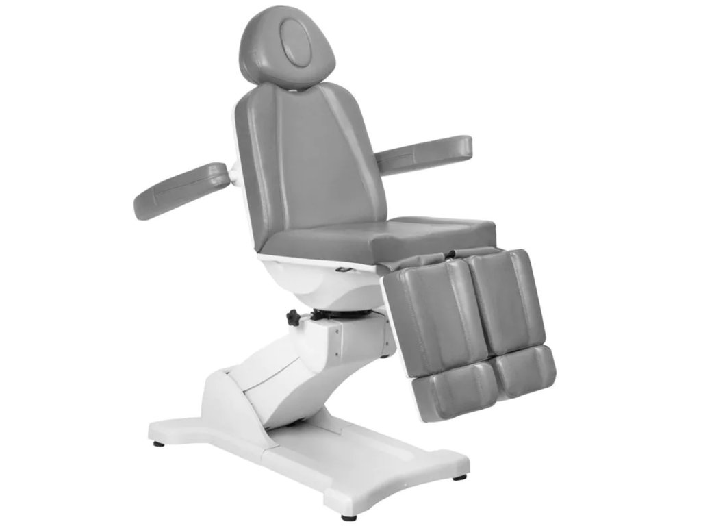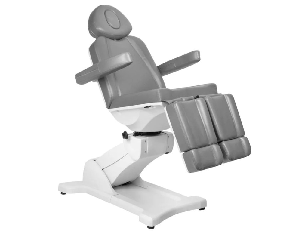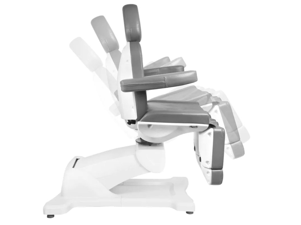 elektrické kozmetické kreslo ideálne pre kozmetické salóny a kúpeľné salóny. vďaka nezávislým motorom umožňuje nastavenie sedadla v 5 rovinách pomocou diaľkového ovládania, čo umožňuje vykonávať ošetrenia tváre a tela. Kreslo má inovatívne riešenie, ktoré umožňuje otočenie sedadla o 180 stupňov okolo svojej osi. pomocou diaľkového ovládania môžeme nastaviť výšku kresla, sklon operadla a opierky nôh a nastaviť sedadlo do polohy kolísky.