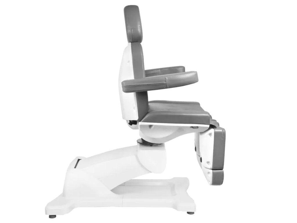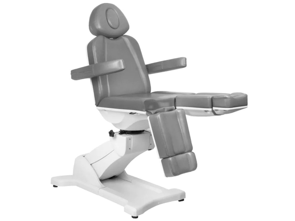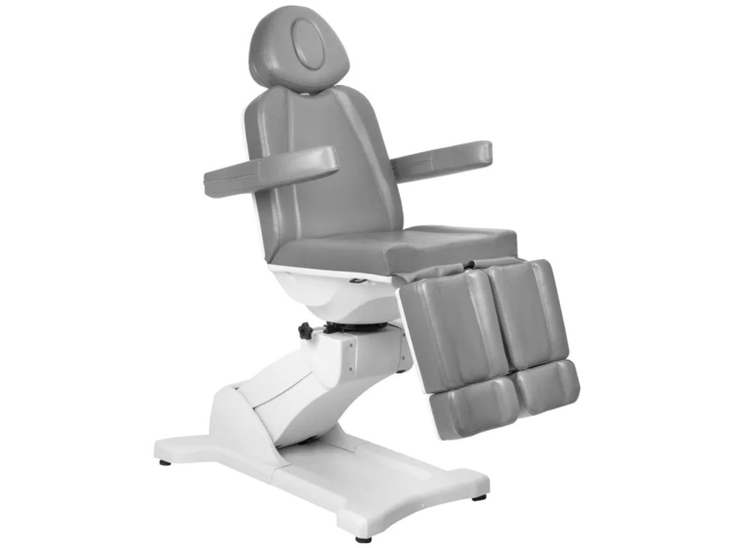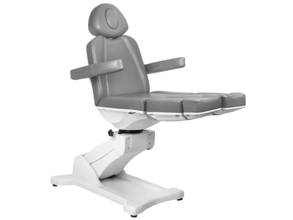 elektrické kozmetické kreslo ideálne pre kozmetické salóny a kúpeľné salóny. vďaka nezávislým motorom umožňuje nastavenie sedadla v 5 rovinách pomocou diaľkového ovládania, čo umožňuje vykonávať ošetrenia tváre a tela. Kreslo má inovatívne riešenie, ktoré umožňuje otočenie sedadla o 180 stupňov okolo svojej osi. pomocou diaľkového ovládania môžeme nastaviť výšku kresla, sklon operadla a opierky nôh a nastaviť sedadlo do polohy kolísky.
