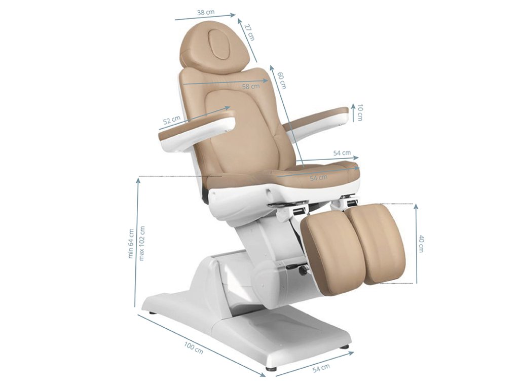 moderné elektricky nastaviteľné kozmetické kreslo, ktoré zabezpečuje pohodlie počas ošetrenia nielen pre pacientov, ale aj pre osoby vykonávajúce zákrok.