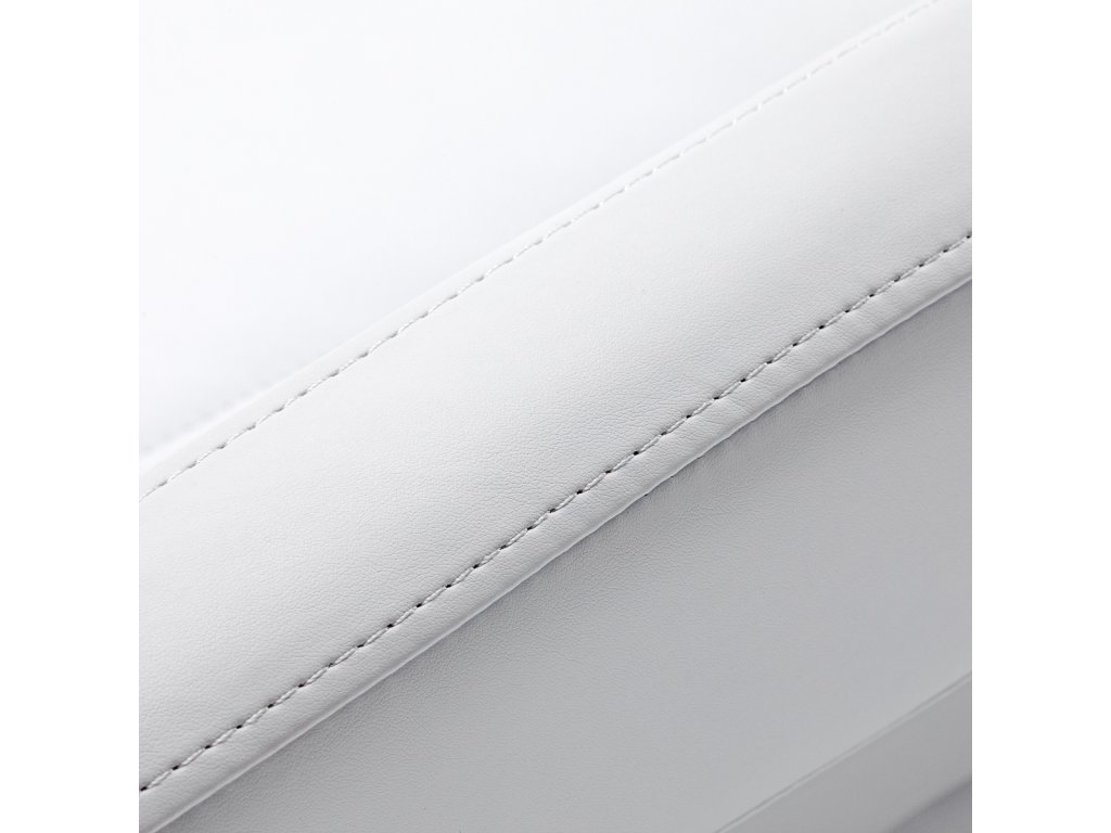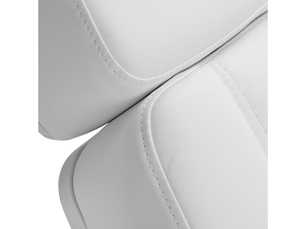 Pevná konštrukcia stoličky zaručujestabilita a trvanlivosť pri každodennom používaní. Sedadlo je vyplnené penou so starostlivo vybranou tvrdosťou,zaručuje pohodlie aj počas dlhých procedúr. Čalúnenie z kvalitnej syntetickej kože príjemnej na dotyk v odtieňoch bielej farby dodáva stoličke profesionálny vzhľad a jeodolný voči vlhkosti a ľahko sa čistí. Odolná základňa zaisťuje stabilitu, zatiaľ čo presné povrchové úpravyzvýrazniť moderný charakter stoličky a zlepšiť ergonómiu sedadla.