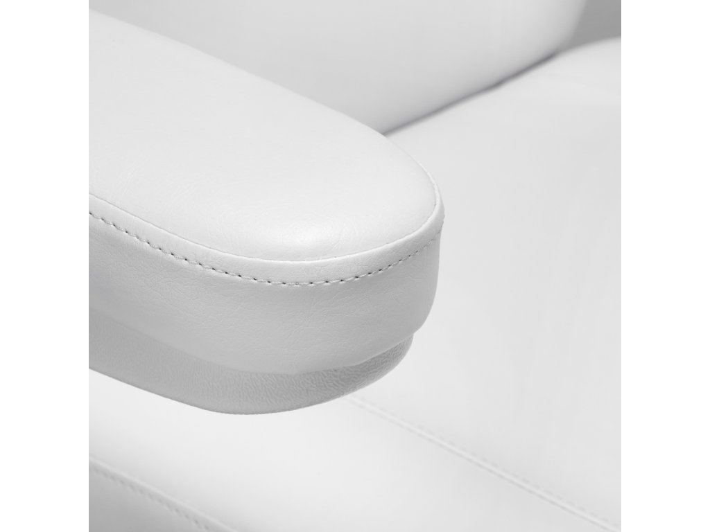 Kreslo je naplnenéprofilovaná pena a pokrytésyntetická koža príjemná na dotyk v odtieňoch bielej. Vďaka použitému materiálu je zariadenie ľahko sa čistí a je odolný voči vlhkosti a vybraným dezinfekčným prostriedkom. Pevná základňa z odolného materiálu v odtieňoch bielej farbyzabezpečuje stabilitu počas liečby. Správne profilované lemy dodávajú kreslu štýlový vzhľad a umožňujú ergonomické sedenie.Minimalistický, jednoduchý dizajn a klasické farby sa hodí do každého interiéru.