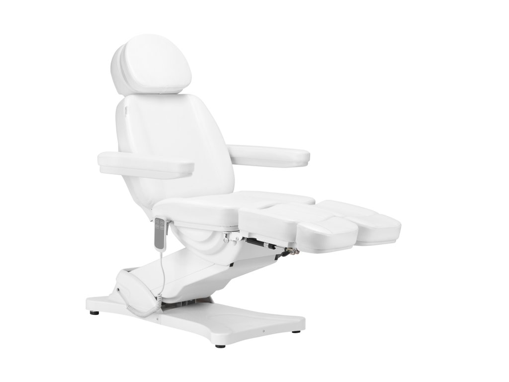 Kreslo jedokonale prispôsobené na vykonávanie podiatrických ošetrení - delená opierka nôh uľahčuje pohodlné vykonávanie služieb a umožňujenezávislé polohovanie nôh. Uhly, pod ktorými sa nachádzajú jeho časti sa nastavujú ručne. Špeciálne navrhnutý mechanizmus umožňuje opierky na nohy naklonené do strán tiež. Predĺženie opierky nôh sa dá tiež nastaviť, čo poskytuje lepšiu oporu pre vyšších používateľov. Všetky tieto vlastnosti zabezpečujú vysoký komfort používania.