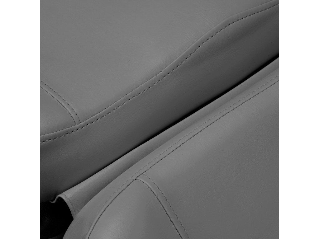 Kreslo je obsadenés tvarovanou penou a pokrytésyntetická koža príjemná na dotyk v odtieňoch sivej. Vďaka použitému materiálu je zariadenieľahko sa čistí a je odolný voči vlhkosti a vybraným dezinfekčným prostriedkom. Pevná základňa z odolného materiálu v odtieňoch bielej farby zabezpečuje stabilitu počas liečby. Správne profilované lemy dodávajú kreslu štýlový vzhľad a umožňujú ergonomické sedenie.Minimalistický, jednoduchý dizajn a klasické farby sa hodí do každého interiéru.