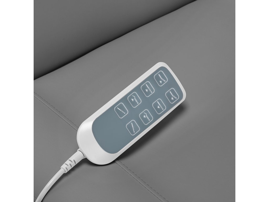 Používanie stránkyľahko použiteľný diaľkový ovládač, stolička sa plynule nastavuje v 4 rovinách - má nastavenie výšky, operadla, opierky nôh a sklonu kolísky. Výšku sedadla možno nastaviťod 61 cm do 84 cm, a keď je stolička úplne vysunutá, dosahujedĺžka 2 m. Tieto rozmery umožňujú ľuďom rôznej výšky ľahko používať zariadenie a umožňujúprispôsobiť aktuálnej liečbe a individuálne potreby, čo ovplyvňuje pohodlie používateľa aj osoby vykonávajúcej službu.Rukoväte umiestnené na oboch stranách sedadla umožňuje zavesiť diaľkové ovládanie tak, aby bolo vždy po ruke.