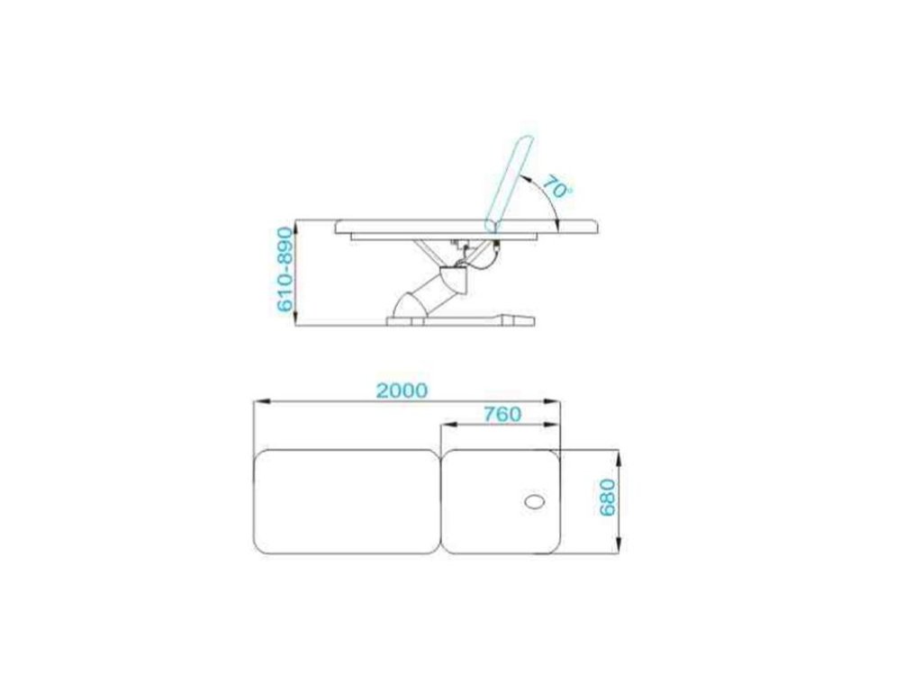 moderná azurro lezanka. ideálna pre kozmetické salóny. Ideálna ako masážne lôžko alebo na ošetrenie tela. elektrické nastavenie operadla a výšky umožní nastaviť polohu lôžka a nastaviť ho do najpohodlnejšej polohy pre osobu vykonávajúcu ošetrenie. operadlo je tiež nastaviteľné pomocou diaľkového ovládača. celok je čalúnený kvalitnou eko-kožou. Lôžko je veľmi pohodlné.