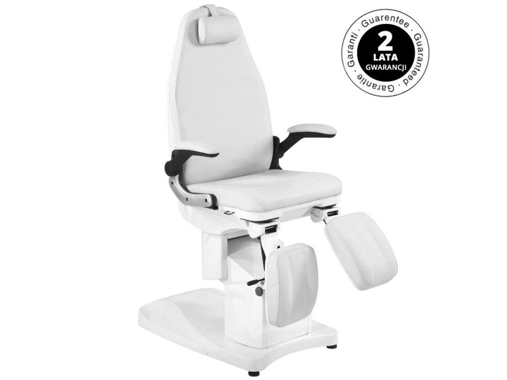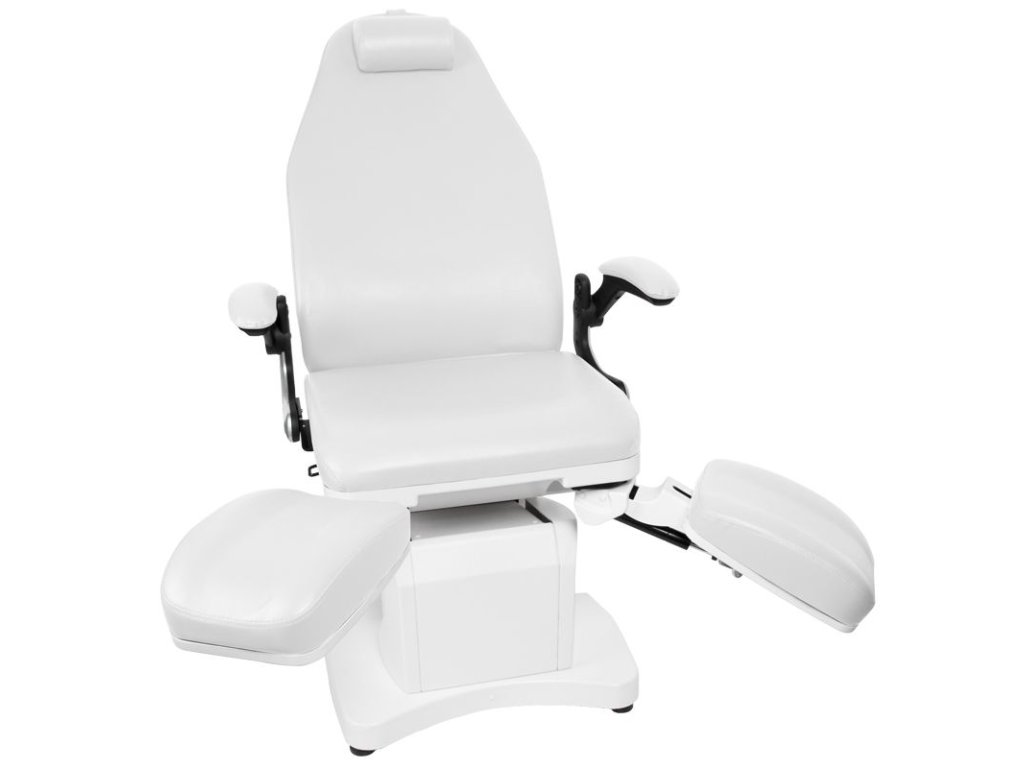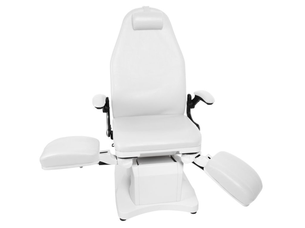 moderné kozmetické kreslo, ktoré poskytuje pohodlie počas ošetrenia nielen pacientom, ale aj osobám vykonávajúcim ošetrenie. ideálne pre podologické ordinácie vybavené elektromotormi, ktoré umožňujú rýchle a pohodlné nastavenie kresla. ° bočné opierky nôh. kreslá sú odolné a veľmi stabilné. vďaka zvýšeným podrúčkam sa zákazníkovi ľahšie sedí na sedadle. nastavenie podnožiek umožňuje dodatočne prispôsobiť kreslo individuálnym potrebám. čalúnenie z kvalitnej ekokože. kreslá sú dostupné v širokej škále farieb. moderný dizajn a funkčnosť v jednom. na fotografii je model v bielom odtieni.