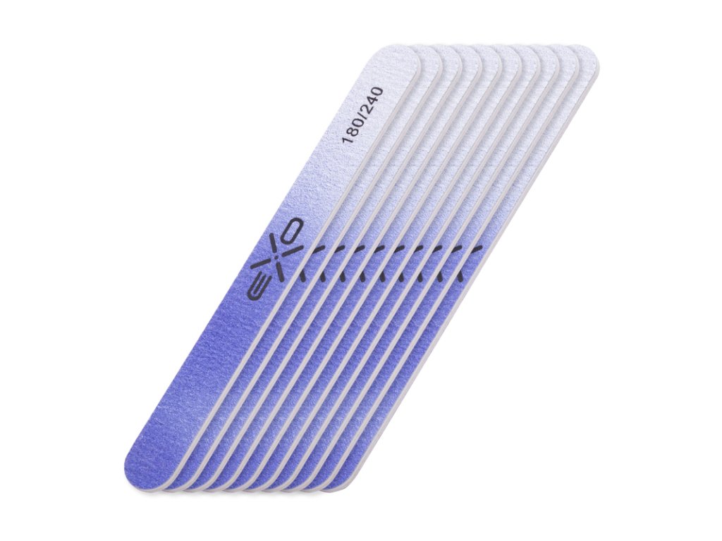 Profesionálny pilník na nechty EXO je nevyhnutným produktom pri základnej práci stylistu. Pilník na nechty s odstupňovaním 180/240 a klasickým rovným tvarom - je to úzky pilník so stredným a jemným odstupňovaním určený na vypracovanie stylingu a prípravu prírodnej nechtovej platničky na úpravu manikúry. Univerzálny, jednoduchý tvar s jemne zaoblenými hranami umožňuje presné manévrovanie okolo šupiniek bez rizika ich poškodenia. Moderná, lepšia konštrukcia papierového pilníka vyrobeného z najkvalitnejších surovín zaručuje dlhodobé používanie.