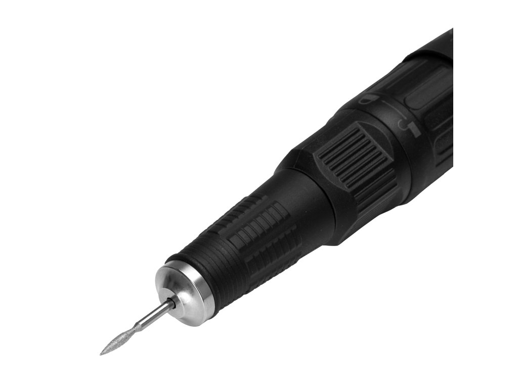 Vŕtačka na nechty je dodávanáso základnou sadou diamantových bitov, čo umožňuje ošetrenie kožičky, prípravu nechtovej platničky a prácu s gélovou alebo akrylovou hmotou. Sada obsahuje aj nosič s brúsnou podložkou - ideálny pre začiatočníkov a užitočný na zlepšenie každodennej práce v salóne.Súprava umožňuje začať pracovať ihneď po vybalení, bez nutnosti kupovať ďalšie príslušenstvo.