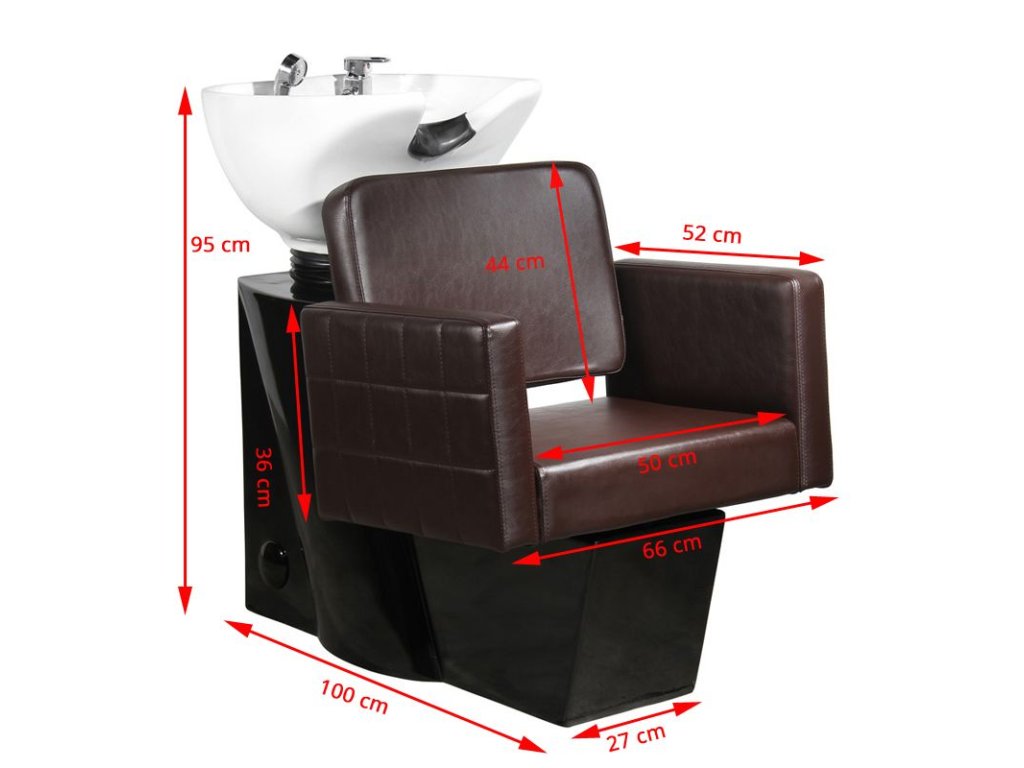 profesionálna kadernícka umývačka - stabilná, mimoriadne pohodlná, pevne skonštruovaná. moderný dizajn z nej robí krásny doplnok vybavenia moderného kaderníckeho salónu. sedadlo z kvalitnej ekokože, so zaujímavým bočným prešívaním. silikónová podložka pod hlavu stabilizuje hlavu klienta a umožňuje jej pohodlné umiestnenie na umývačke. biela miska myki, s možnosťou nastavenia jej sklonu. čierna a hnedá umývačka