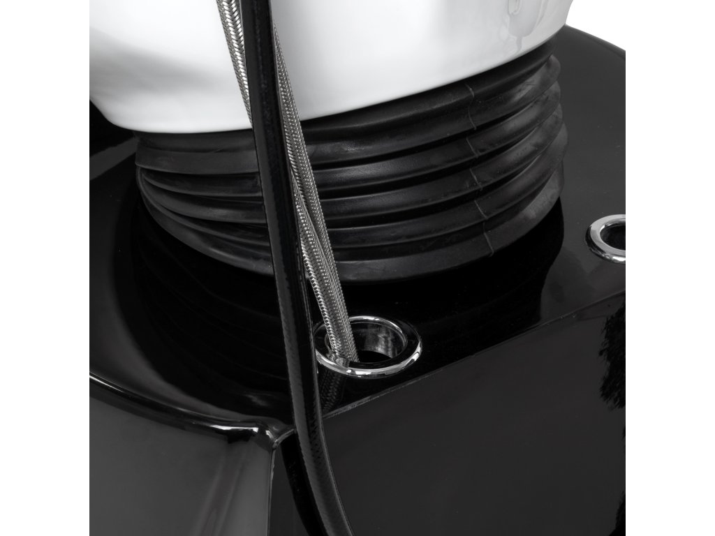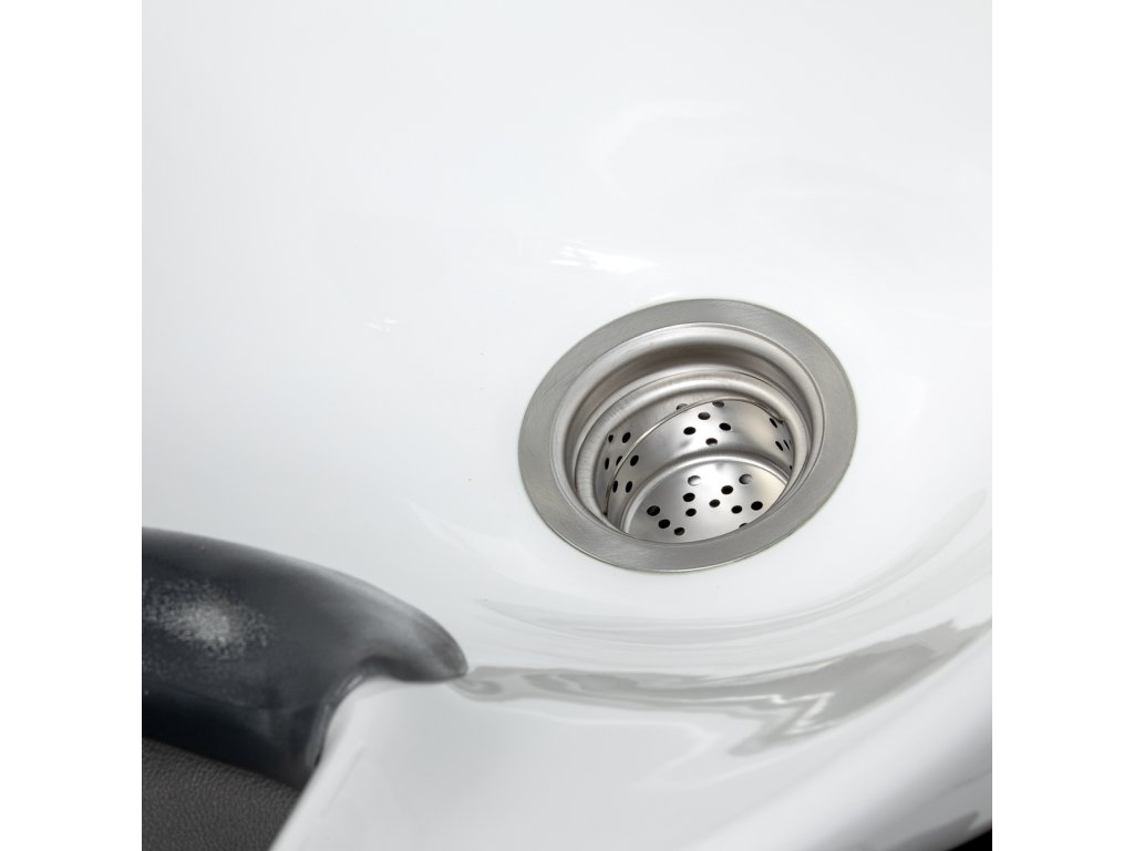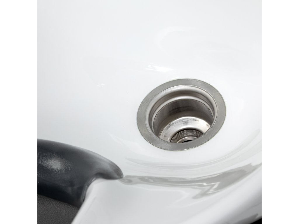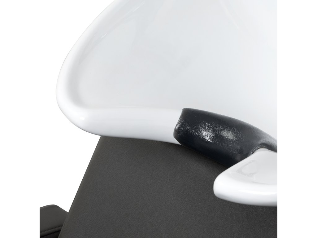 Hlboká keramická miska v bielych odtieňoch účinne znižuje rozstrekovanie vody a prípravkov používaných pri ošetrení. To podporuje pohodlné a presné vykonávanie rôznych kaderníckych služieb.Pohyblivá konštrukcia misy umožňuje jednoduché nastavenie uhla sklonu podľa individuálnych potrieb. Použitý materiál jetrvanlivé, odolné voči zafarbeniu a poškriabaniua ľahko sa udržiava v čistote.Vhodne profilovaný golier poskytuje pohodlnú oporu hlavy počas umývania, zatiaľ čopohodlný plastový kryt v odtieňoch čiernej eliminuje pocit chladu keramického povrchu.