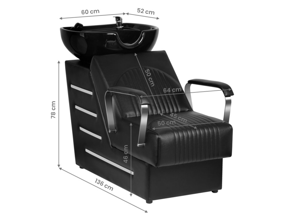 Moderné holičstvo Gabbiano - kombinácia funkčnosti s talianskou eleganciou. Autoumyváreň je vyrobená z najkvalitnejších materiálov a dokonale spracovaná. Vieme, aké dôležité je pohodlie klienta počas ošetrenia, preto špeciálna konštrukcia poskytuje klientovi počas umývania pevnú oporu hlavy. Mäkké, pohodlné sedadlo je potiahnuté kvalitnou ekokožou. Čierna farba kontrastujúca s kovovým odtieňom podrúčok robí z uvedenej umývačky univerzálny prvok, ktorý sa hodí takmer do každého interiéru bez ohľadu na jeho farbu.