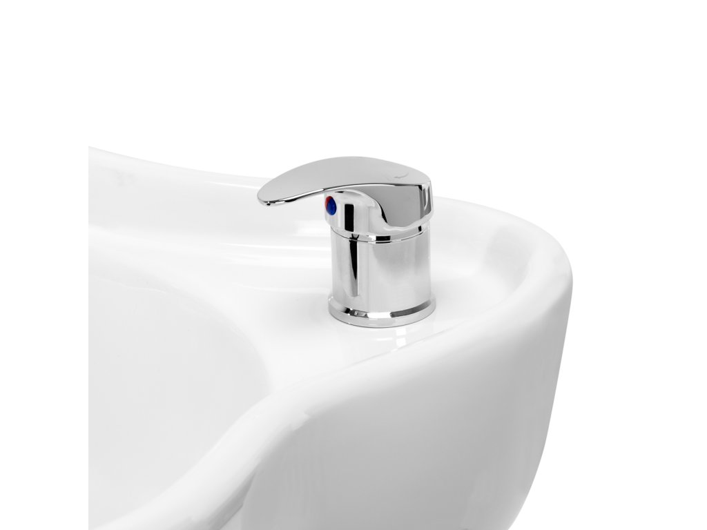 Hĺbka keramickej misy umývadla v odtieňoch bielej farby umožňuje pohodlné aefektívne vykonávanie širokej škály kaderníckych služieb, čím sa zabráni nadmernému striekaniu vody a výrobkov používaných počas ošetrenia. Vďaka použitému materiálu je umývadlotrvanlivé, odolné voči zmene farby a poškriabaniua veľmi ľahko sa udržiava v čistote.Správne profilovaný golier poskytuje pohodlie počas umývania vlasov. Použitiešpeciálna podpora v miske zaručuje správnu oporu hlavy, aby jej váha nespočívala na krku. Toto inovatívne riešenie zabraňuje napätiu a nepohodliu v oblasti krku azaručuje vysoký komfort, a to aj počas dlhej liečby. Okrem toho vďakapohodlné čierne plastové prekrytie, zákazník nebude pociťovať nepríjemný chladný keramický povrch.
