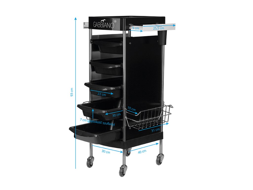 Kadernícky asistent Gabbiano je vysokokvalitný kus nábytku. Je vyrobený z odolného materiálu ABS s oceľovou rámovou konštrukciou, ktorá zaisťuje vysokú stabilitu a odolnosť. celok je osadený na veľmi odolných gumových kolieskach s guličkovými ložiskami. klasická čierna farba bude dokonale ladiť s interiérom vašej obývačky!