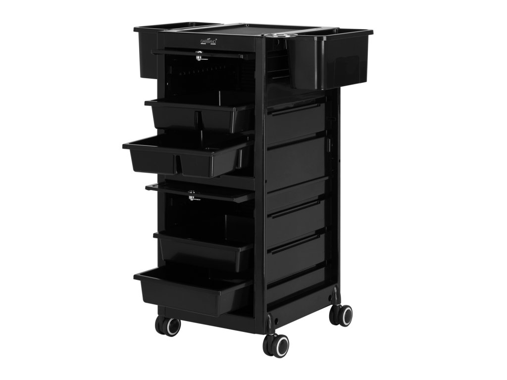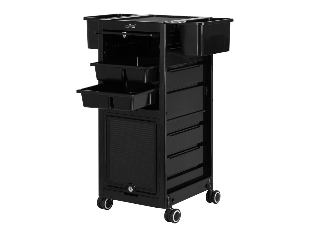 The simple style of the helper makes it suitable for any interior. Made of easy-to-clean, durable material, this piece of furniture in shades of black will significantly improve the work in any beauty salon. Rubberised wheels provide mobility, allowing it to be moved freely and smoothly depending on the needs – whether during treatments around the hairdressing chair or putting it away after the service. They can also be easily dismantled if necessary. This helper will prove especially useful for those who highly value functionality.