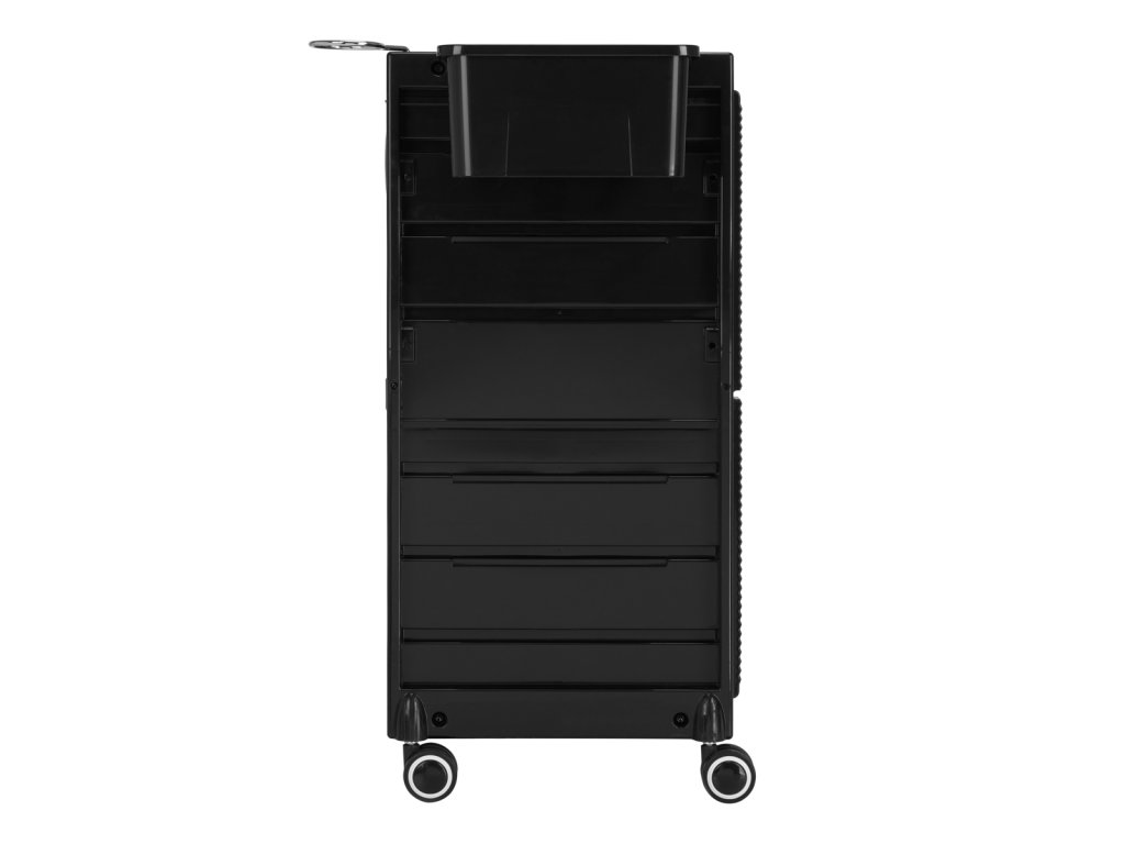 On top of the helper is a shallow recess, which will be great for putting away tools while you work. It will also be a great place to put the most necessary accessories for the duration of the service – as in the case of coloring – bowls, paints or brushes. The surface of the recess – like all the trays in the set – is covered with a matt, rough, non-slip layer, thanks to which it cushions and keeps the placed instruments in a given place.