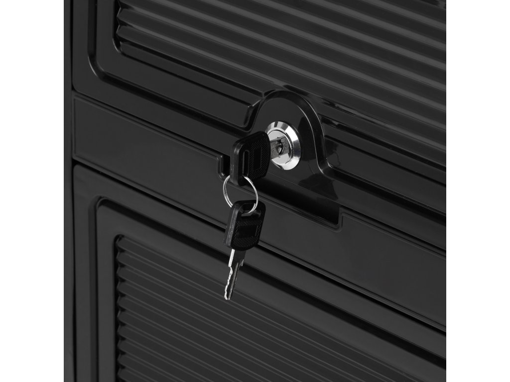 The enclosed back panel and the possibility of locking the door with a key and thus securing the drawers against sliding out guarantee the safety of the utensils placed in the helper. This solution will work especially in the case of mobile services, where products are more likely to be damaged in transport.