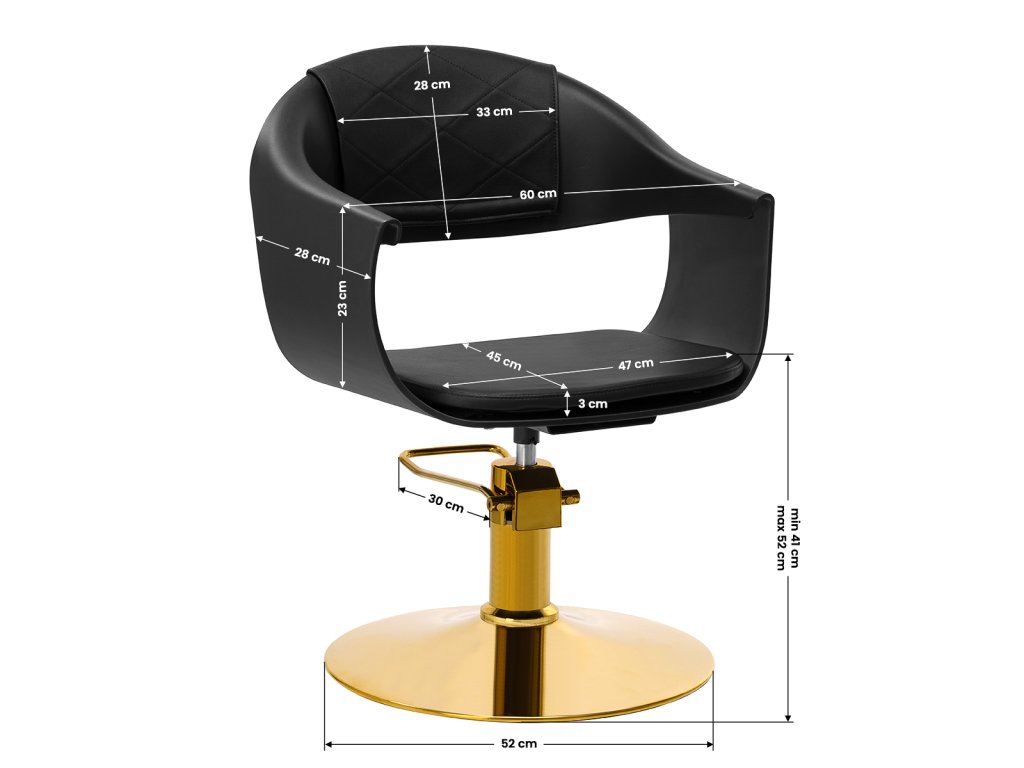The sturdy plastic body lends lightness while ensuring sturdiness and durability. The materials used make the equipment comfortable to use, resistant to moisture, and easy to clean. The round base in shades of gold not only adds elegance but also guarantees stability and strength. Minimalist black perfectly complements various hair salon interiors, introducing an elegant accent to the workspace.
